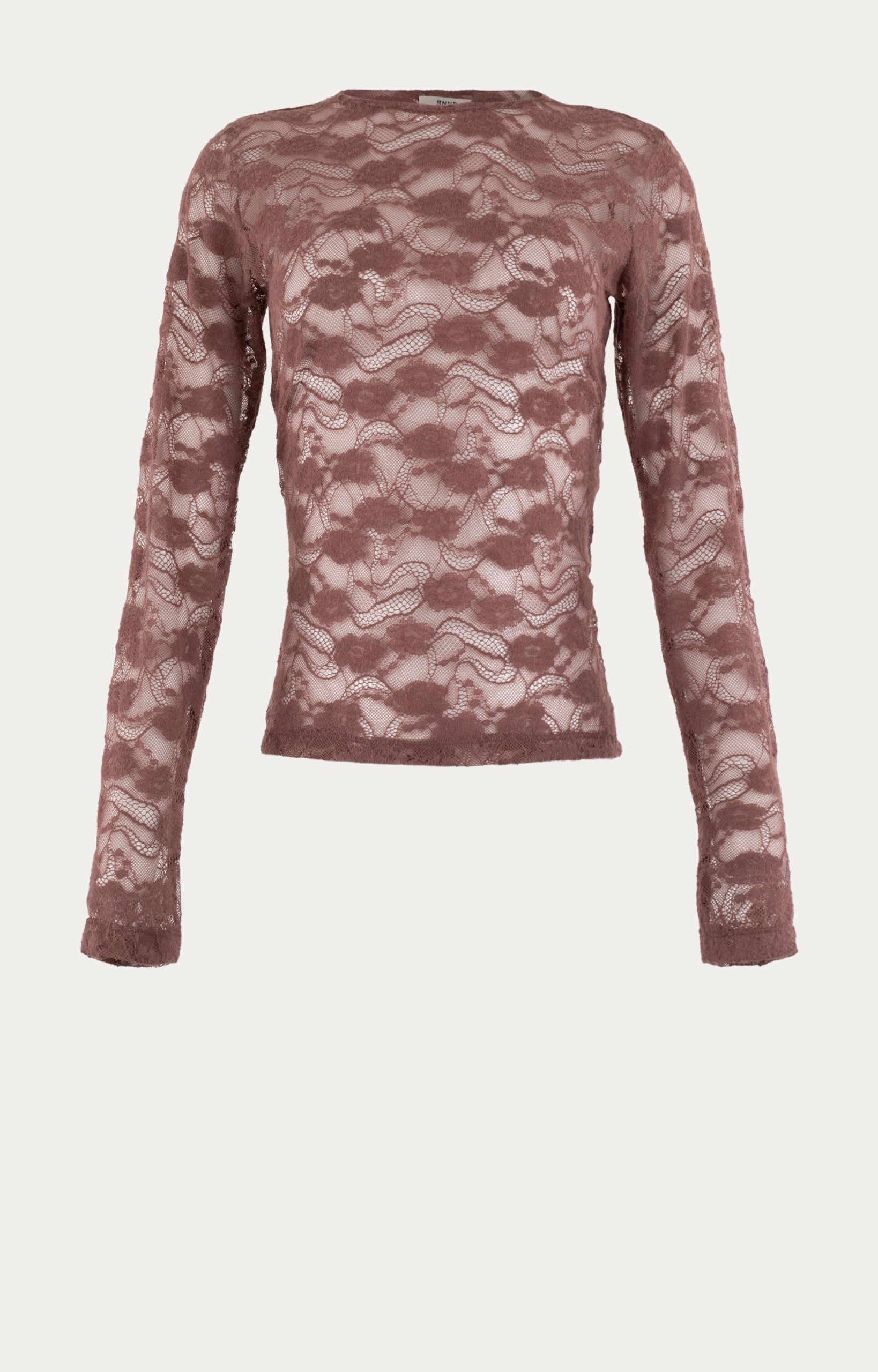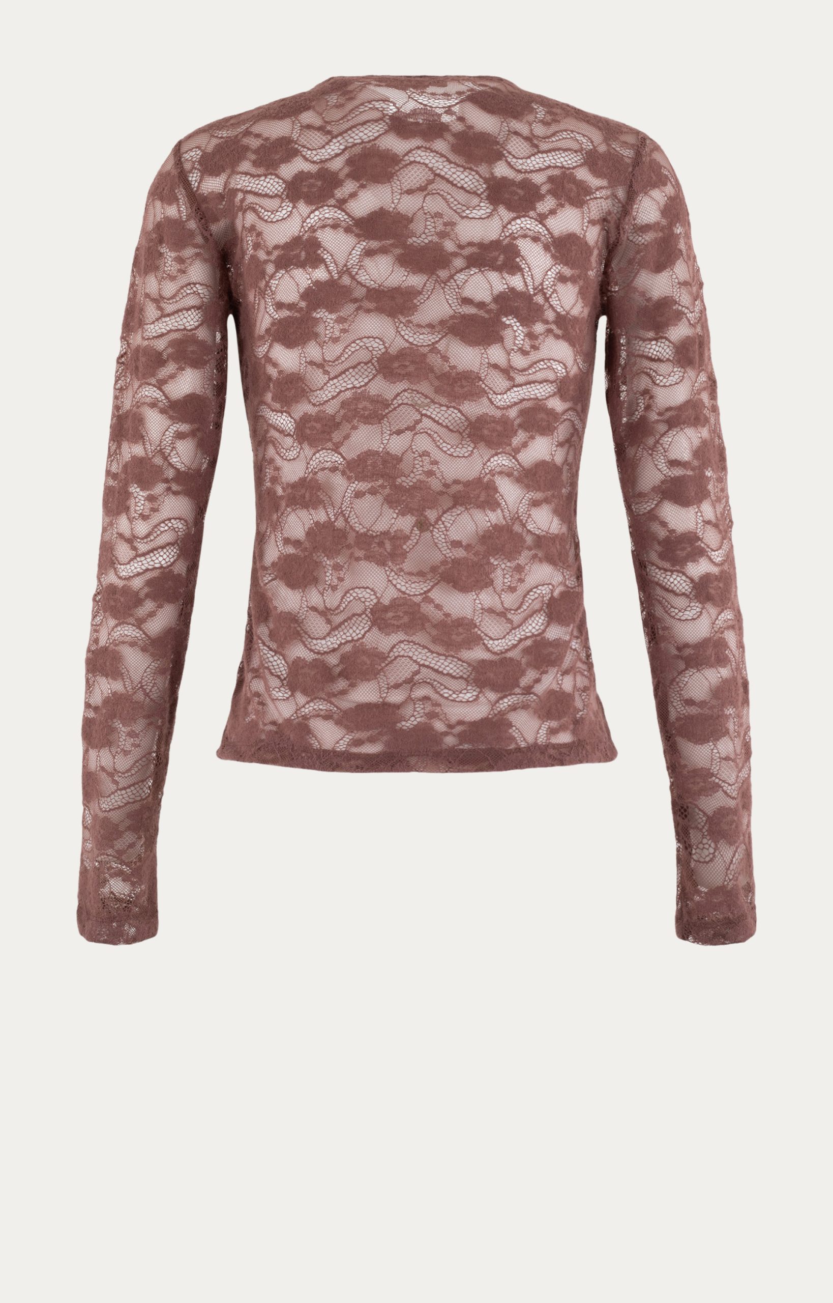 Dit kanten t-shirt van Anna heeft een verfijnde, doorzichtige look en een aangesloten pasvorm. Gemaakt van polyamide en elastaan is het materiaal rekbaar en comfortabel om te dragen. De ronde hals en lange mouwen maken het geschikt voor het winterseizoen, bijvoorbeeld als laagje onder een vest of blazer. De subtiele bloemenstructuur in het kant geeft het item extra detail. Ideaal voor wie houdt van bijzondere basics met een zachte touch.