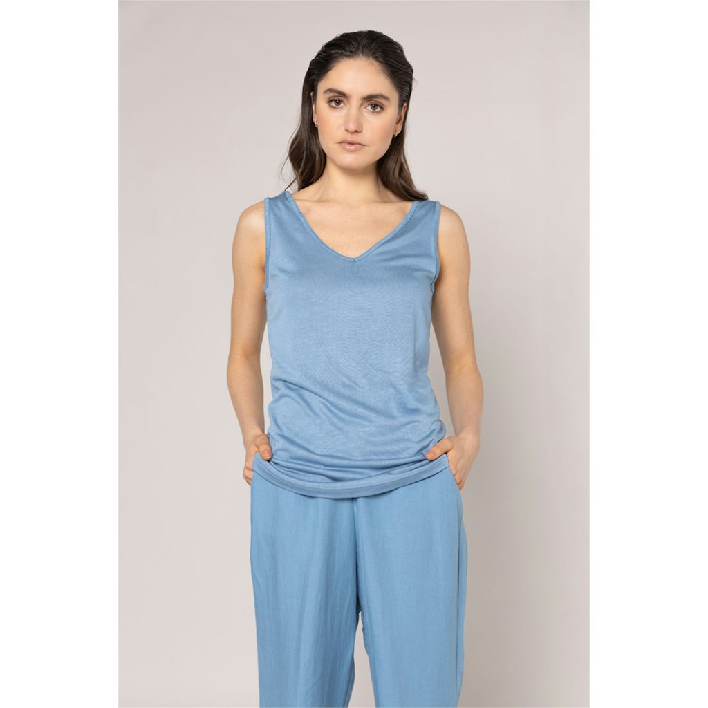 Luxe singlet / top in 100% viscose jersey met ton sur ton lurex stiksels