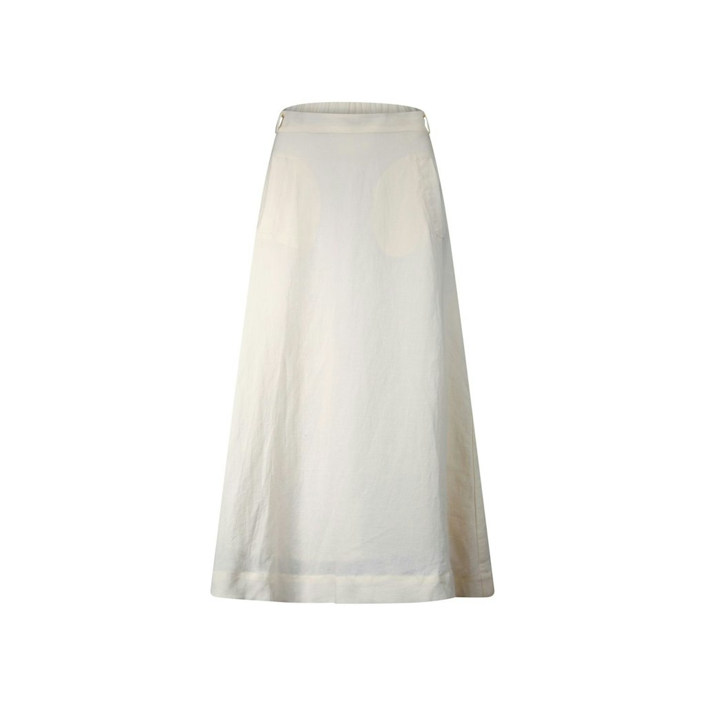 Ruimvallend wijde rok met zakken en elastische tailleband achterzijde in viscose/linnen menging
