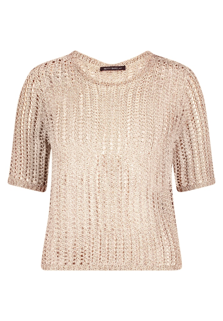 Een comfortabele, halflange gebreide trui met een klassieke ronde hals. De metallic vezels geven het effen ontwerp een subtiele glans en het bewust open model zorgt voor een ontspannen, vrouwelijke uitstraling.