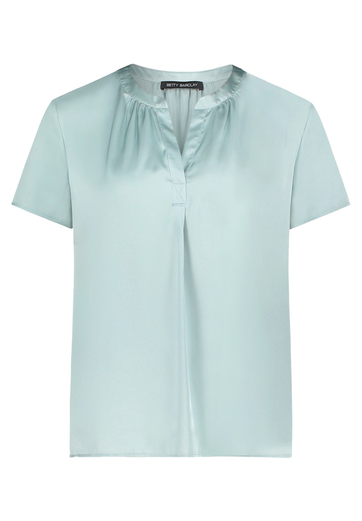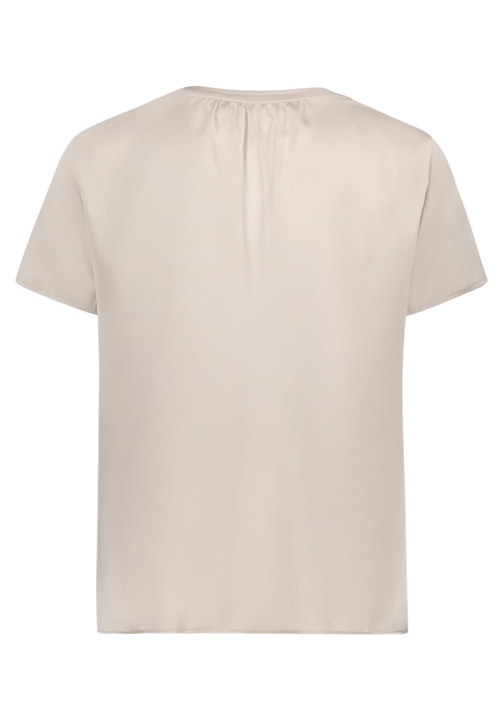 Een casual satijnen blouse met halflange mouwen en een vrouwelijke V-hals. De soepelvallende stof zorgt voor draagcomfort, terwijl de effen kleur een elegante, lichte uitstraling geeft aan de casual look – en dat alles zonder sluiting.