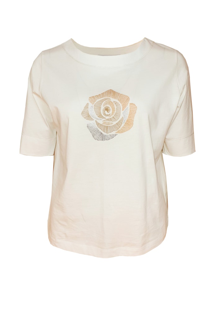 Dit print shirt overtuigt met een subtiel grafisch bloemmotief en tijdloos ontwerp. De ronde halslijn met een brede knip geeft het shirt een moderne touch, terwijl de Milanese arm, een iets langere, flatterende halve mouw, een vrouwelijke silhouet geeft. De rechte snit met een smalle pasvorm zorgt voor een strakke, moderne silhouet. Gemaakt van hoogwaardige, puur katoen.