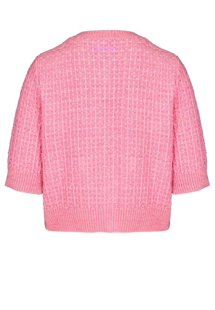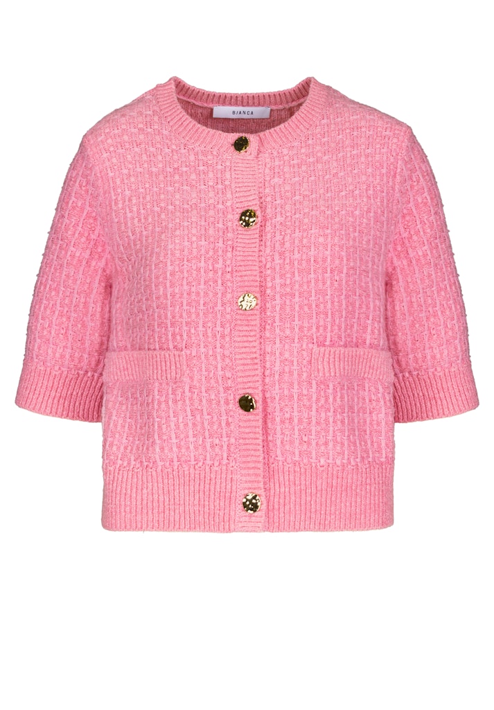 Dit vest inspireert met modern breiwerk in een trendy kleur en een stijlvolle uitstraling. De ronde halslijn en de nobele knopenknip geven het een charmante, goed verzorgde uitstraling. Dankzij de zachte stofmix met katoen is het jasje bijzonder comfortabel om te dragen. De rechte, losse pasvorm en korte mouwen maken ze de ideale metgezel voor stijlvolle overgangslooks – perfect gedragen over blouses, overhemden of jurken.