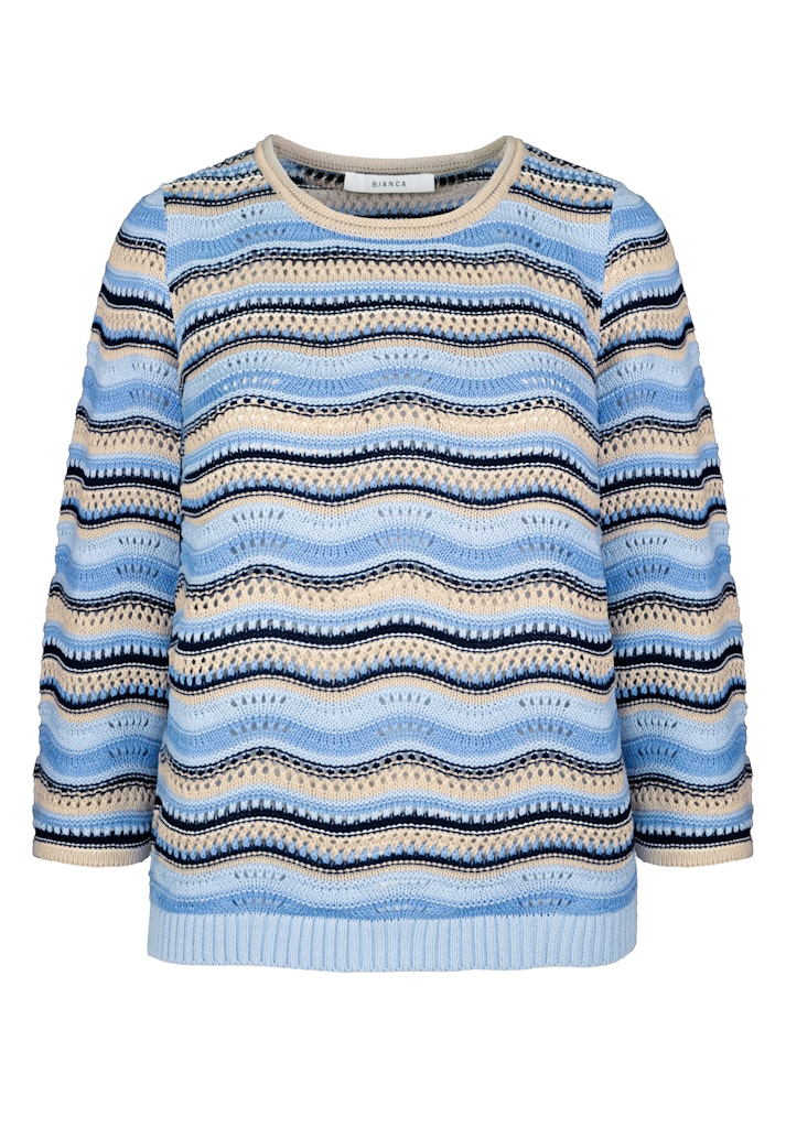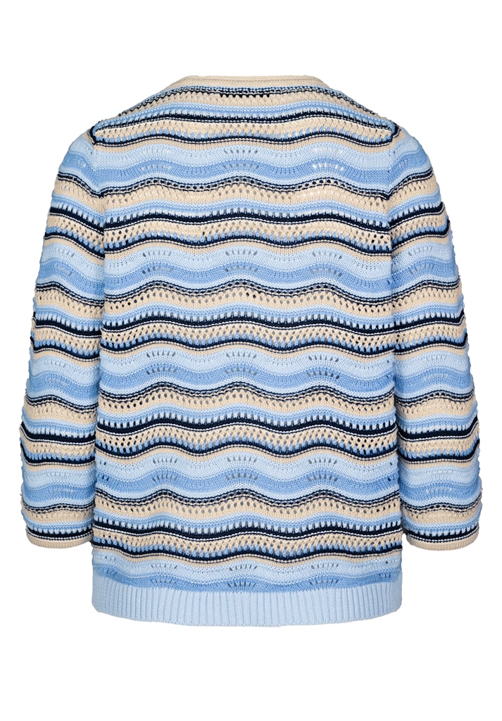 Deze gebreide trui overtuigt met een decoratieve mix van gebreide stoffen in een moderne trendkleur. De gestreepte golfstructuur geeft het ontwerp een speciale uitstraling. De 3/4 mouwen en de ronde halslijn met contrasterende oprolde rand voegen stijlvolle details toe. Dankzij de hoogwaardige materiaalmix met katoen is Rike aangenaam zacht om te dragen. De rechte, losse pasvorm maakt de look compleet, een modieuze metgezel voor elke dag.