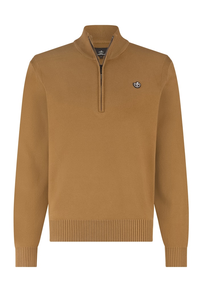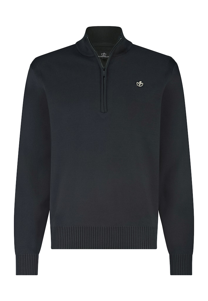 Deze fijngebreide trui met halve rits en regular fit is uitgevoerd in een effen kleur en voorzien van een rubberen badge op de borst. De mix van viscose en polyester voelt glad aan, heeft een soepele valling en blijft goed in model. De boorden zijn 3x3 geribd en de ribstructuur rond de mouwinzet geeft een subtiel accent aan het ontwerp