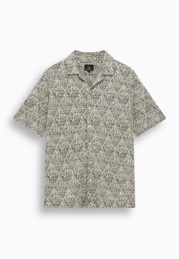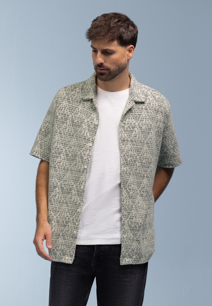 Dit overhemd is uitgevoerd in een comfortabele regular fit en heeft korte mouwen voor een moderne uitstraling. Het jacquarddessin geeft de stof een subtiele, stijlvolle structuur. Het ontwerp is afgewerkt zonder borstzak en zonder button-downkraag, wat zorgt voor een cleane en eigentijdse look. De mix van katoen en polyester voelt prettig aan en draagt comfortabel gedurende de dag.