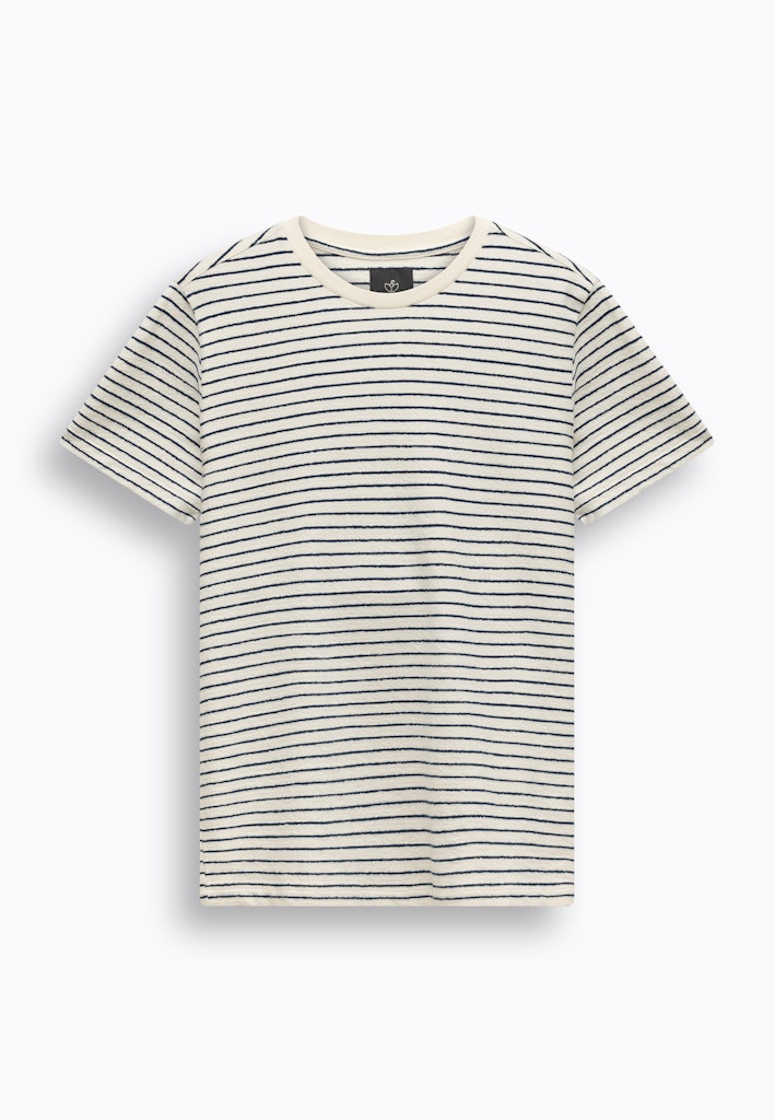 Dit T-shirt is ontworpen in een comfortabele regular fit. De ronde hals en korte mouwen geven het model een sportieve uitstraling, terwijl het streepdessin zorgt voor een stijlvolle touch. Gemaakt van zuiver katoen voelt het T-shirt ademend en prettig aan. Een veelzijdig item dat past bij een casual, moderne look.