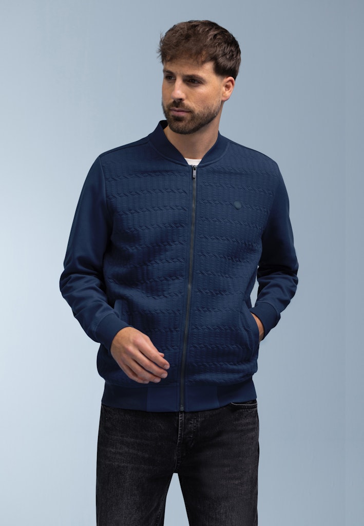 Dit sweatvest is uitgevoerd in een comfortabele regular fit en heeft een sportieve uitstraling. De doorgestikte voorkant geeft het ontwerp extra karakter, terwijl de ribgebreide afwerking zorgt voor een verzorgde look. Lange mouwen en een ritssluiting maken het vest praktisch in gebruik. Twee steekzakken en een subtiele rubberen badge op de borst vormen functionele details. Dankzij de mix van polyamide en polyester draagt het vest prettig gedurende de dag.