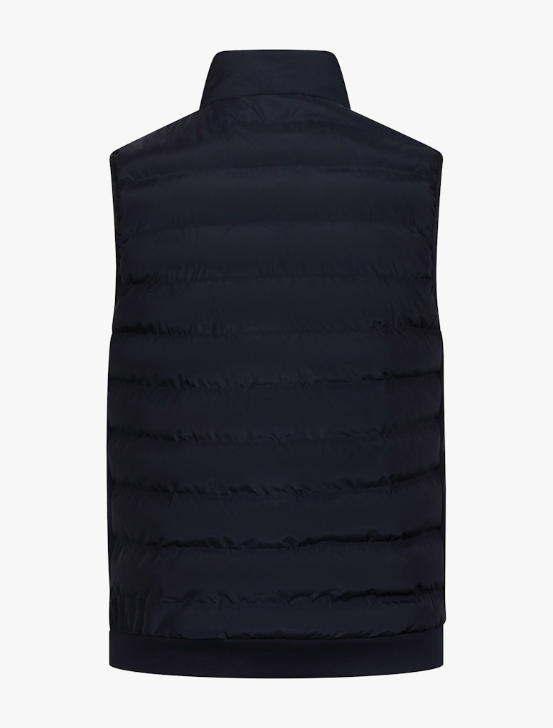 Deze regular fit bodywarmer is winddicht, waterafstotend en voorzien van duurzame Sorona®-voering voor lichtgewicht comfort. De gewatteerde structuur geeft een moderne uitstraling, terwijl de ritssluiting, steekzakken met rits en logo-badge het ontwerp compleet maken.