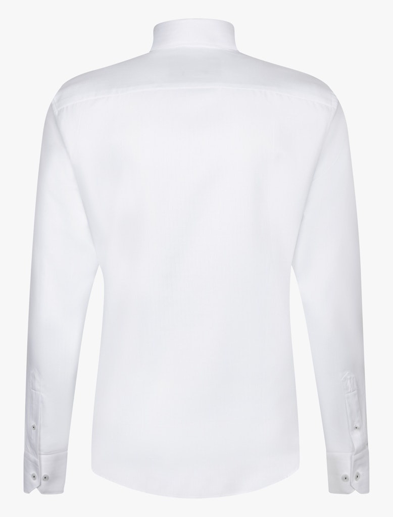 Dit overhemd is gemaakt van 100% katoen met een visgraat weving. De slim fit pasvorm en widespread kraag zorgen voor een stijlvolle uitstraling. Subtiele accenten zoals de contrastprint in de kraag en de knoopaanzet met contrastkleur geven het ontwerp een eigentijdse twist.