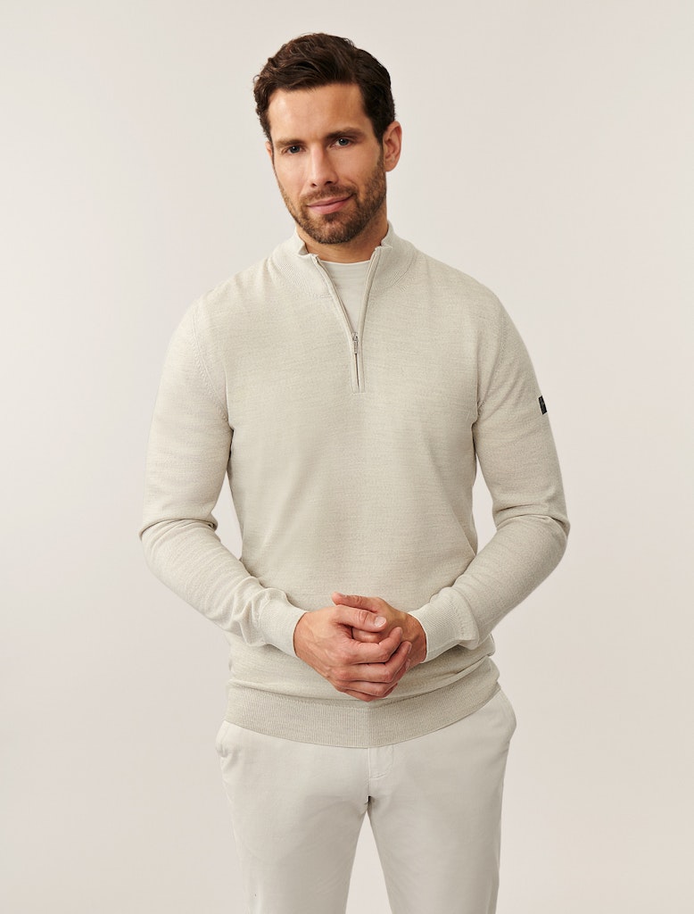 Deze trui is gemaakt van 100% Italiaanse Merino wol, wat zorgt voor een ongeëvenaarde zachtheid en warmte. De regular fit biedt een tijdloze uitstraling en is perfect voor elke gelegenheid. Ideaal voor zowel casual als formele settings, deze trui houdt je comfortabel en stijlvol tijdens de koudere maanden.