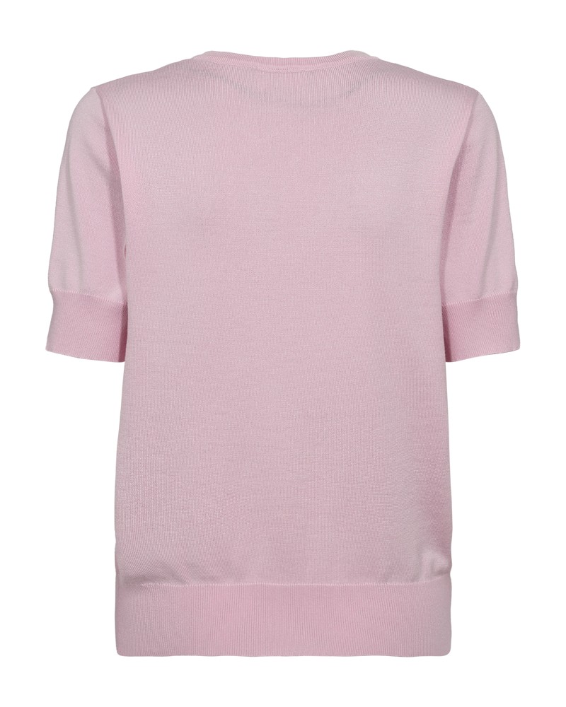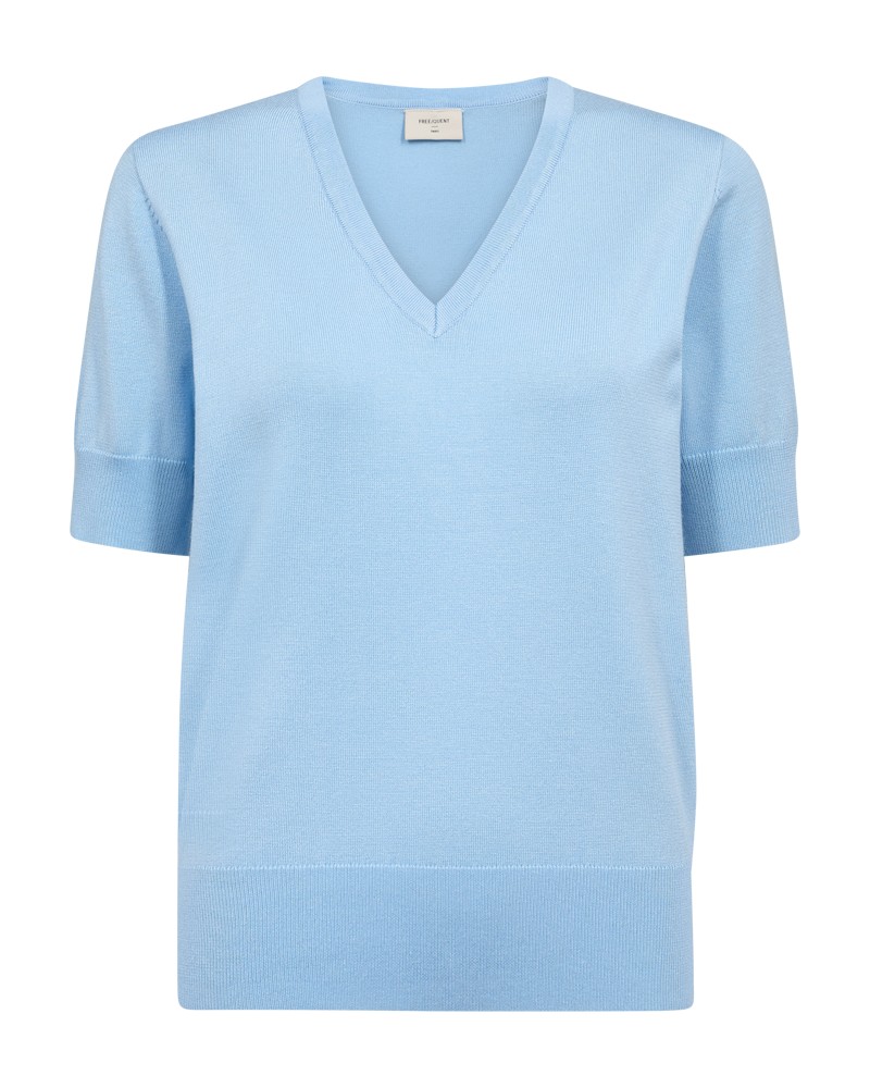 Trui van Freequent in fijne gebreide kwaliteit. De trui is eenvoudig van stijl met een V-hals, korte mouwen, geribde randen en een elegante, losse pasvorm.