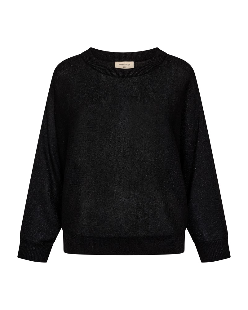 Trui van Freequent in fijne breikwaliteit met een mooi glittereffect. De trui heeft een losse pasvorm met geribde randen, een ronde halslijn en batmouwen.