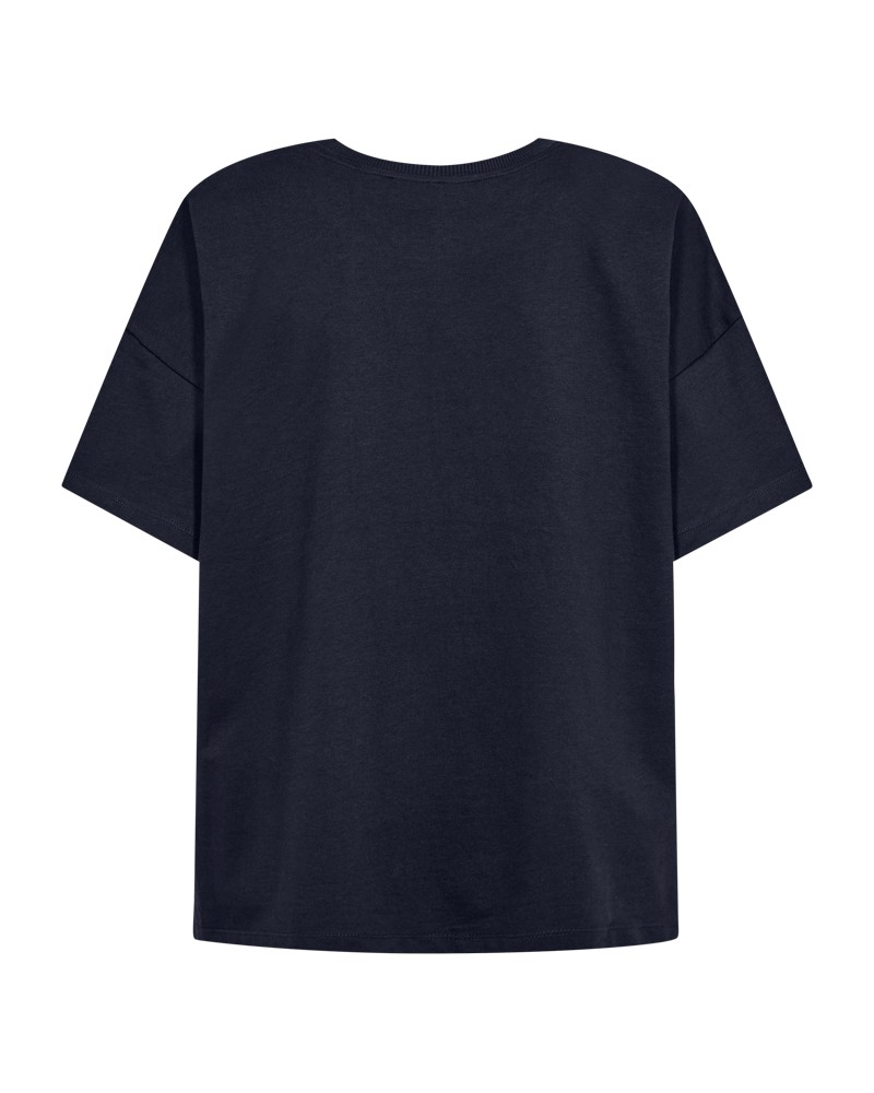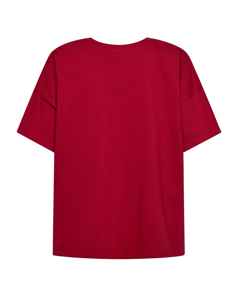 T-shirt van Freequent met een print aan de voorkant. Daarnaast heeft het T-shirt een ronde halslijn met ribbel, zijsplitten, een asymmetrische onderrand en korte mouwen met drop shoulders. Details die samenkomen voor een losse pasvorm.