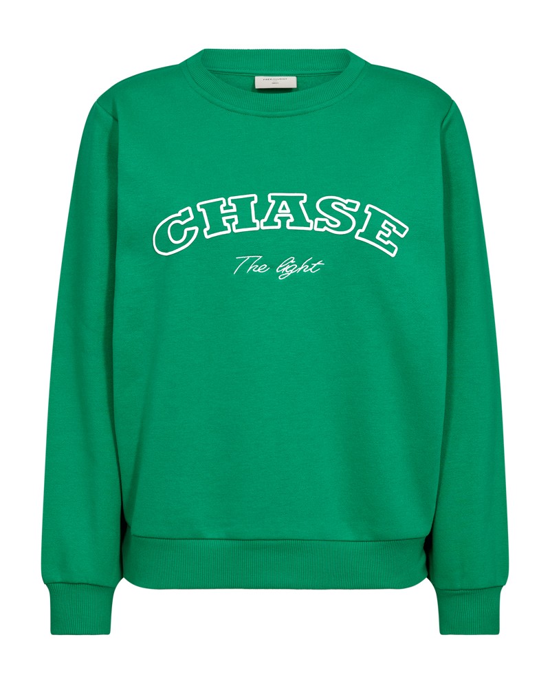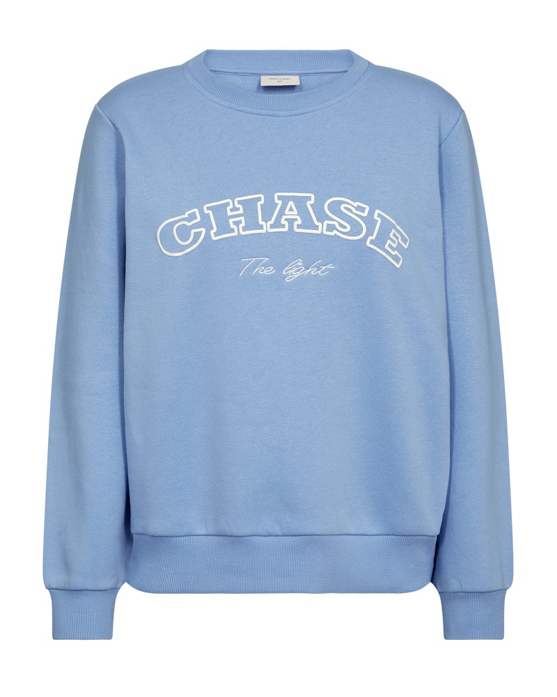 Trui van Freequent in zachte kwaliteit met een mooie print. De trui is eenvoudig van stijl met een ronde halslijn, lange mouwen met manchetten en geribde randen.