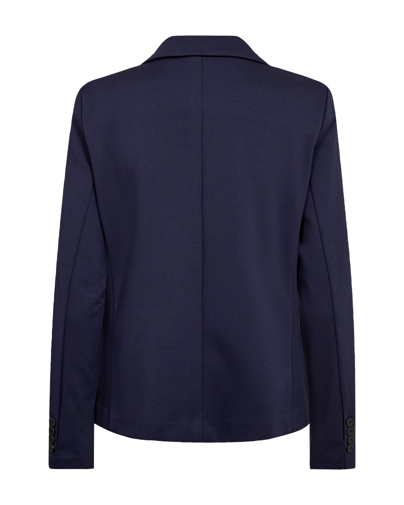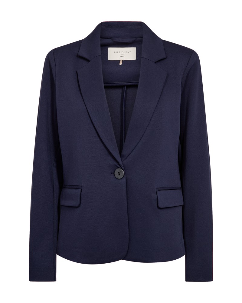 Blazer van Freequent in een zachte en rekbare kwaliteit. Het jasje is eenvoudig van stijl met knoopsluiting, lange mouwen, V-hals met revers, zijzakken en een elegante, nauwsluitende vorm.