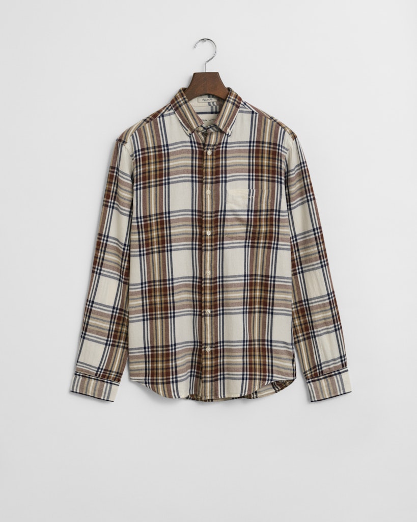 Het flanellen overhemd is het luchtige alternatief voor het klassieke flanellen overhemd. Verder is dit overhemd met normale pasvorm voorzien van een speciaal geverfd all-over ruitje, een button-down kraag, verstelbare manchetten, een ronde zoom en knopen van gerecycled polyester. Het overhemd is afgewerkt met een GANT-borduursel op het borstzakje.