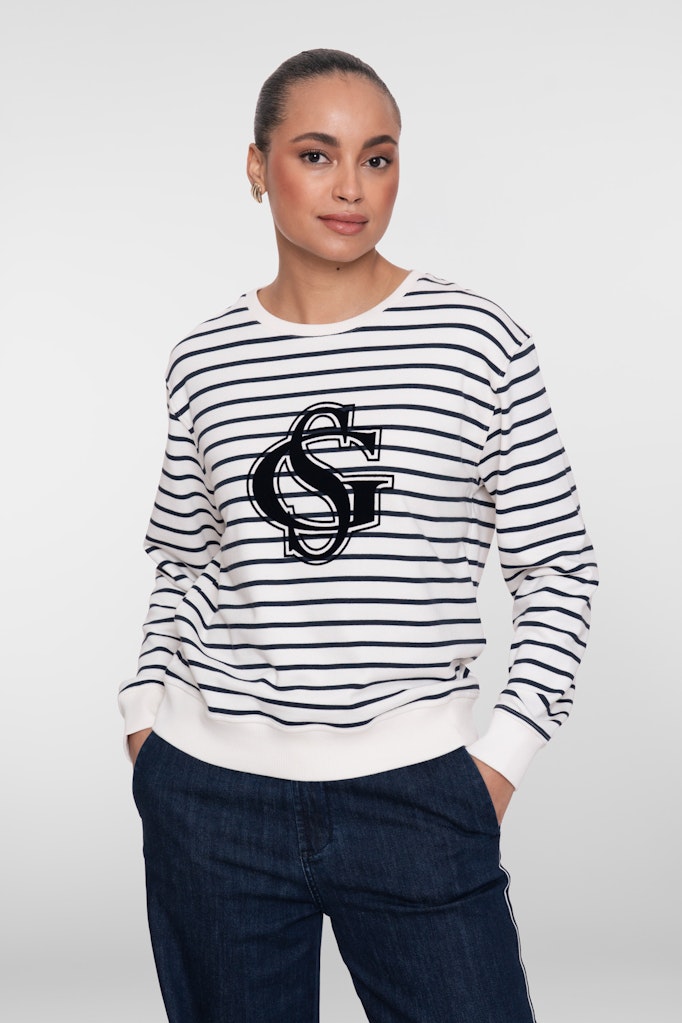 Deze gestreepte sweater combineert een tijdloos dessin met een subtiele Geisha Fashion logo print op de voorzijde. De ronde hals, lange mouwen en ribboorden zorgen voor een prettige pasvorm. Draag de sweater met een jeans voor een casual look of combineer met een pantalon voor een verzorgde dagelijkse outfit.