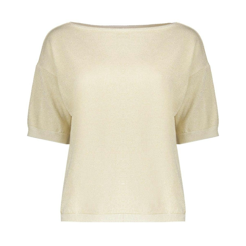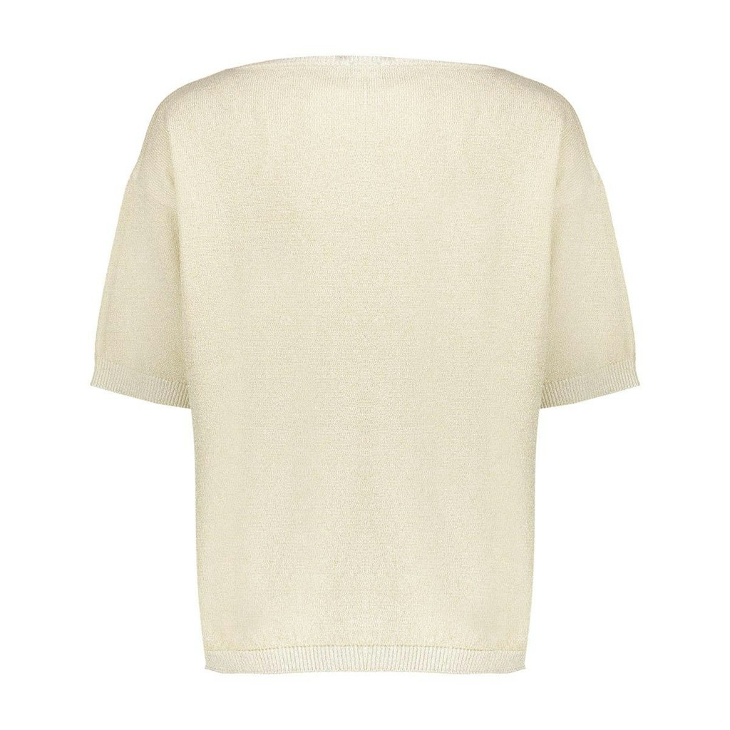 Deze pullover is uitgevoerd in een fijngebreide kwaliteit met subtiele lurexglans. De rechte, losvallende pasvorm en aangeknipte mouwen zorgen voor een soepele fit die elegant om het lichaam valt. De zachte, lichte knit voelt comfortabel aan en geeft elke zomerse look een verfijnde, vrouwelijke uitstraling.