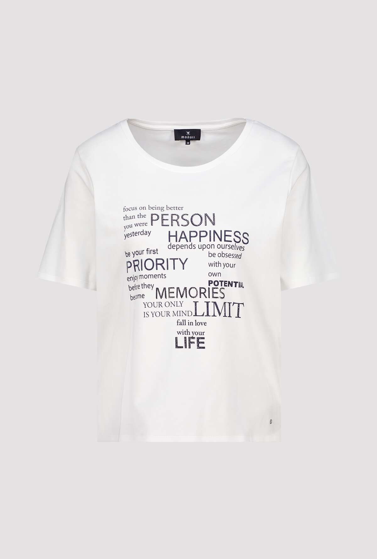 Het T-shirt van 100% katoen maakt indruk met zijn eenvoudige belettering en sprankelende strass-steentjes.