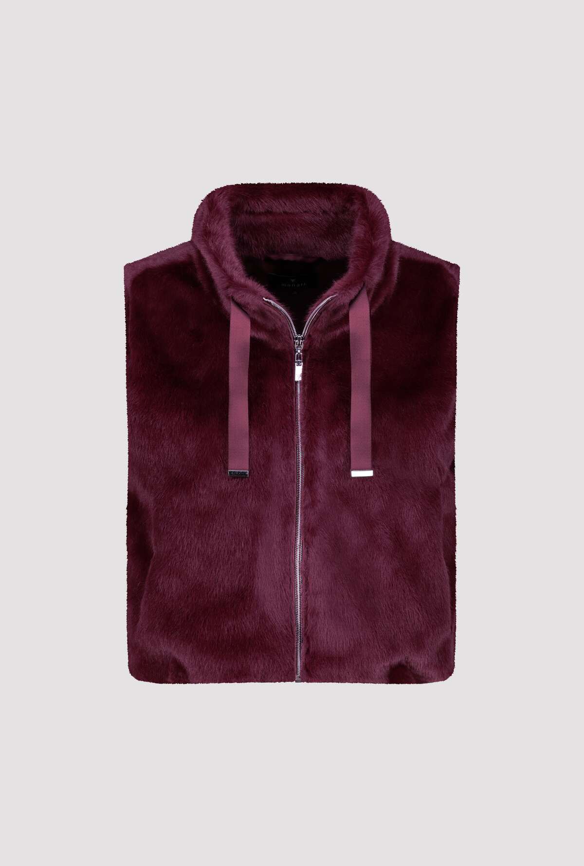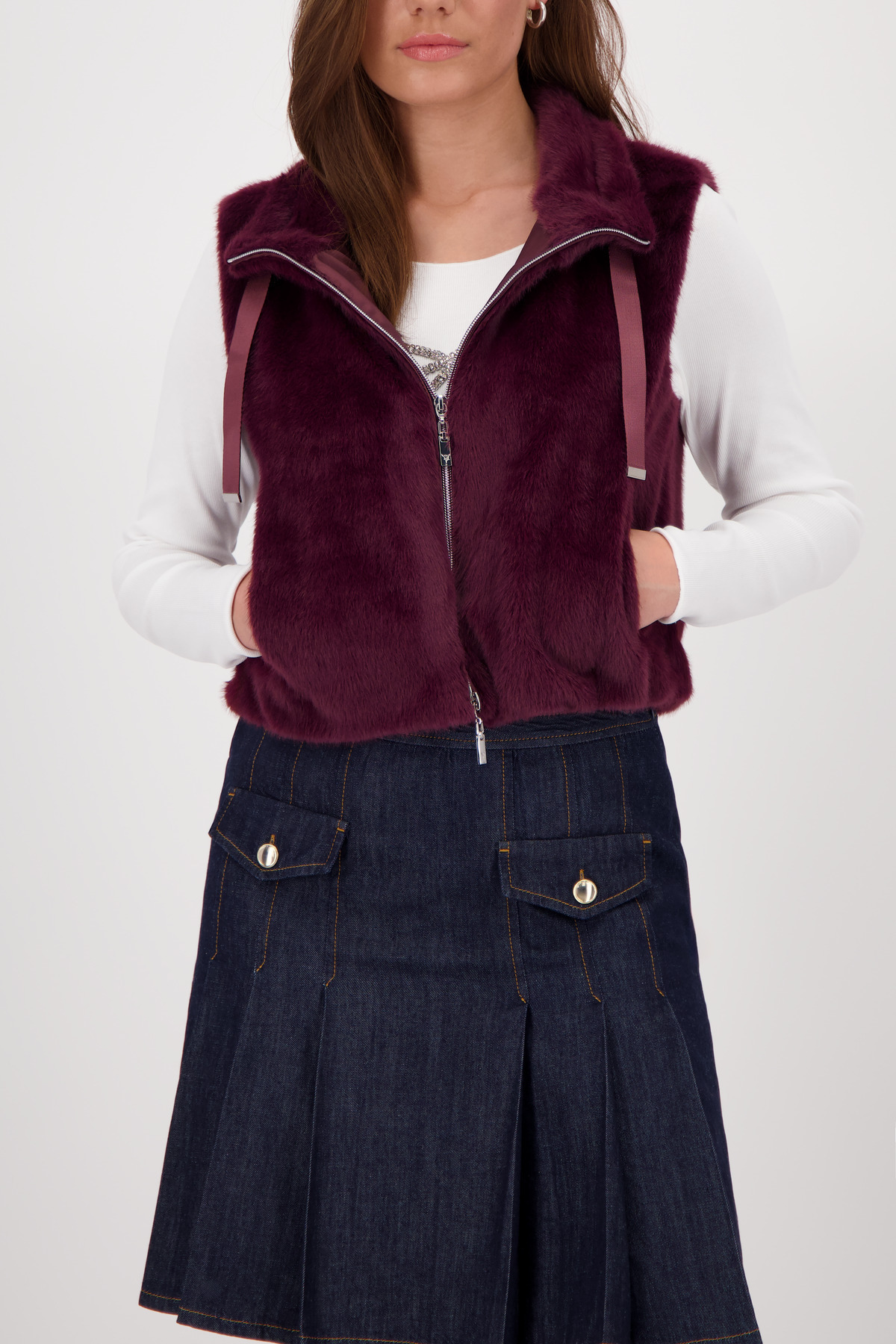 Luxueuze kunststof bont vest met een zachte feel, opstaande kraag, zijzakken en een praktische rits.