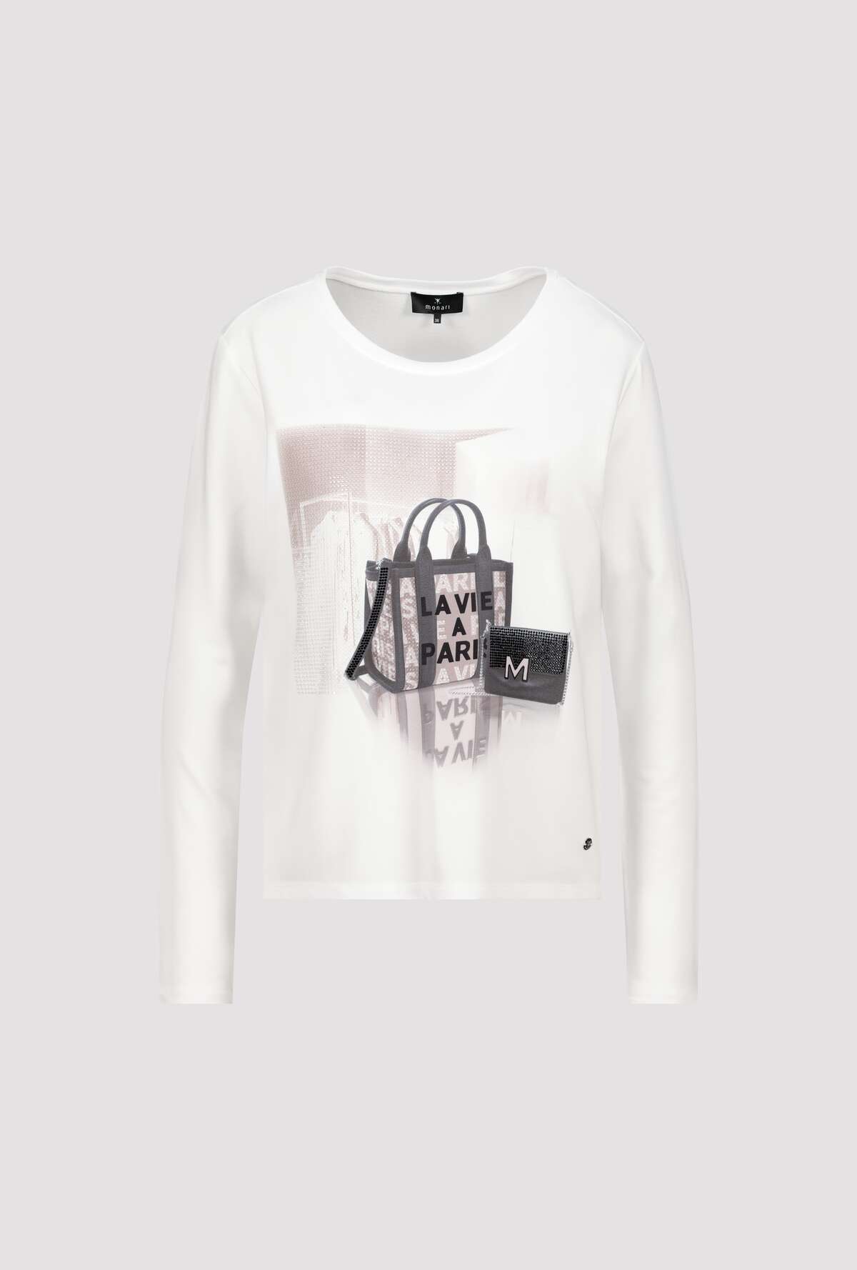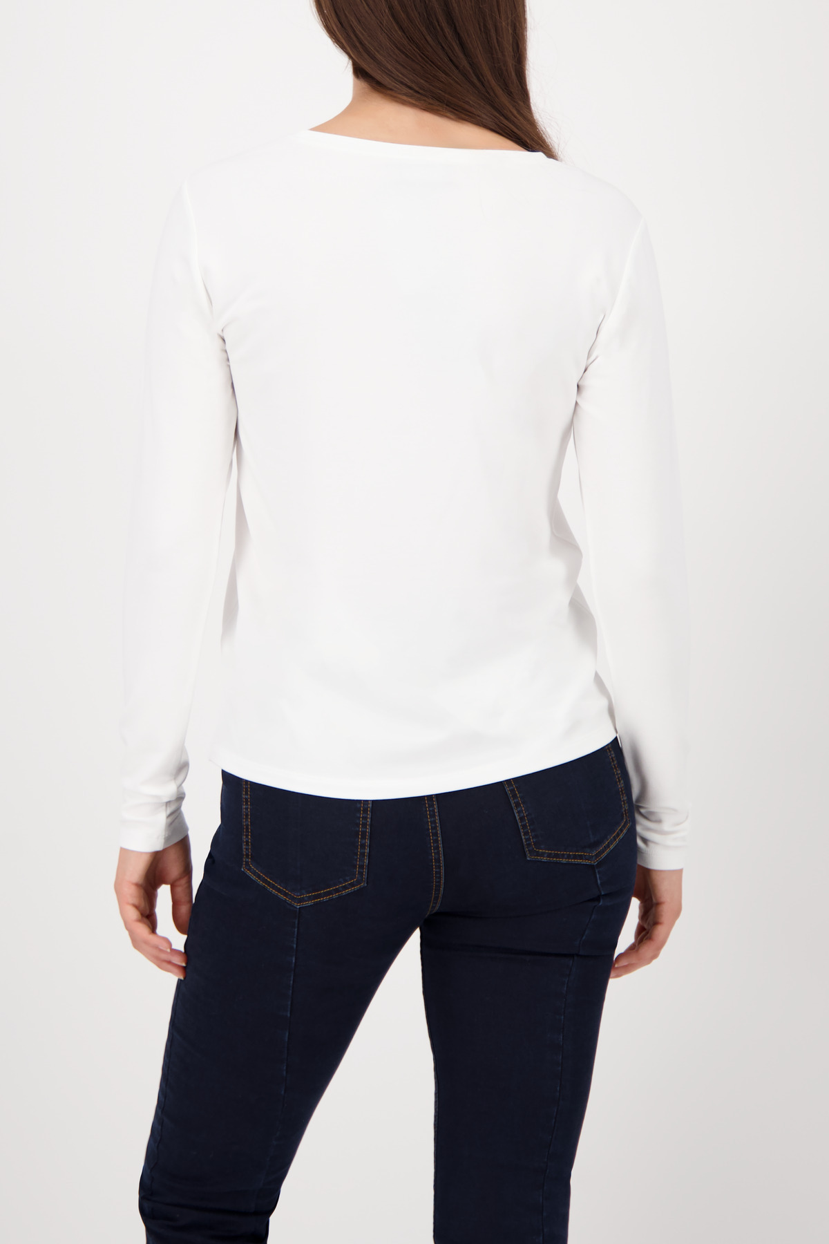 Elegant shirt van elastische viscose met modal, ronde hals, lange mouwen, zakjesprint en fonkelende strass-steentjes voor een stijlvolle uitstraling.