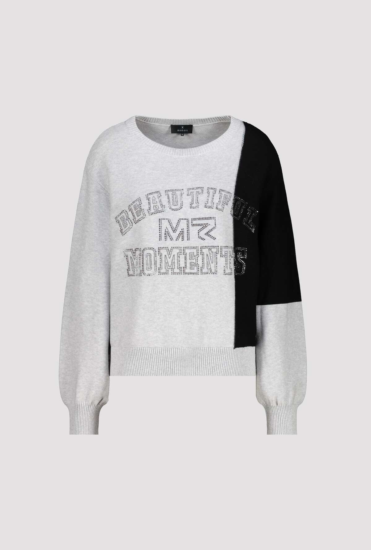 Stijlvolle pullover in colorblocking stijl van 100% katoen, met fonkelende strassstenen, casual, overlappende schouders en een elegante ronde hals.
