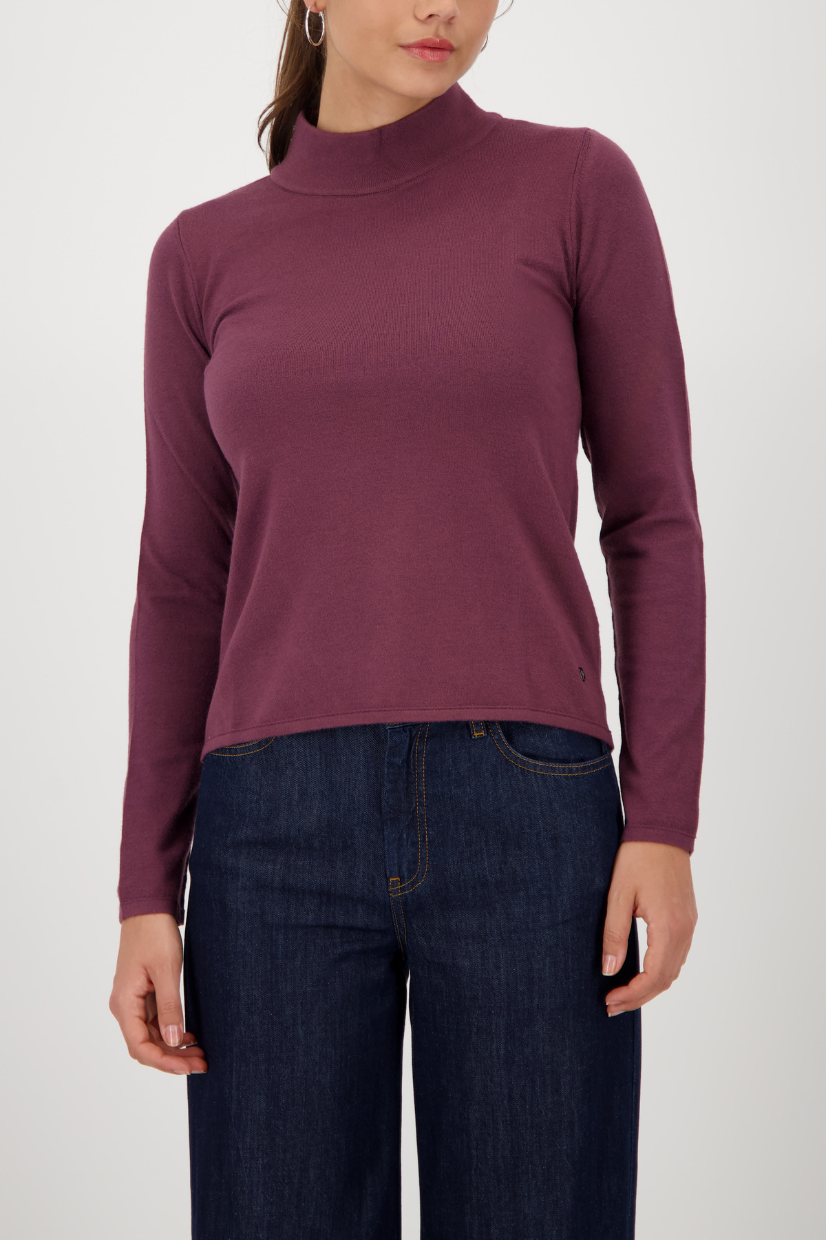Geniet van de stijlvolle, licht getailleerde basic trui van soepele viscose met een zachte feel en elegante opstaande kraag.