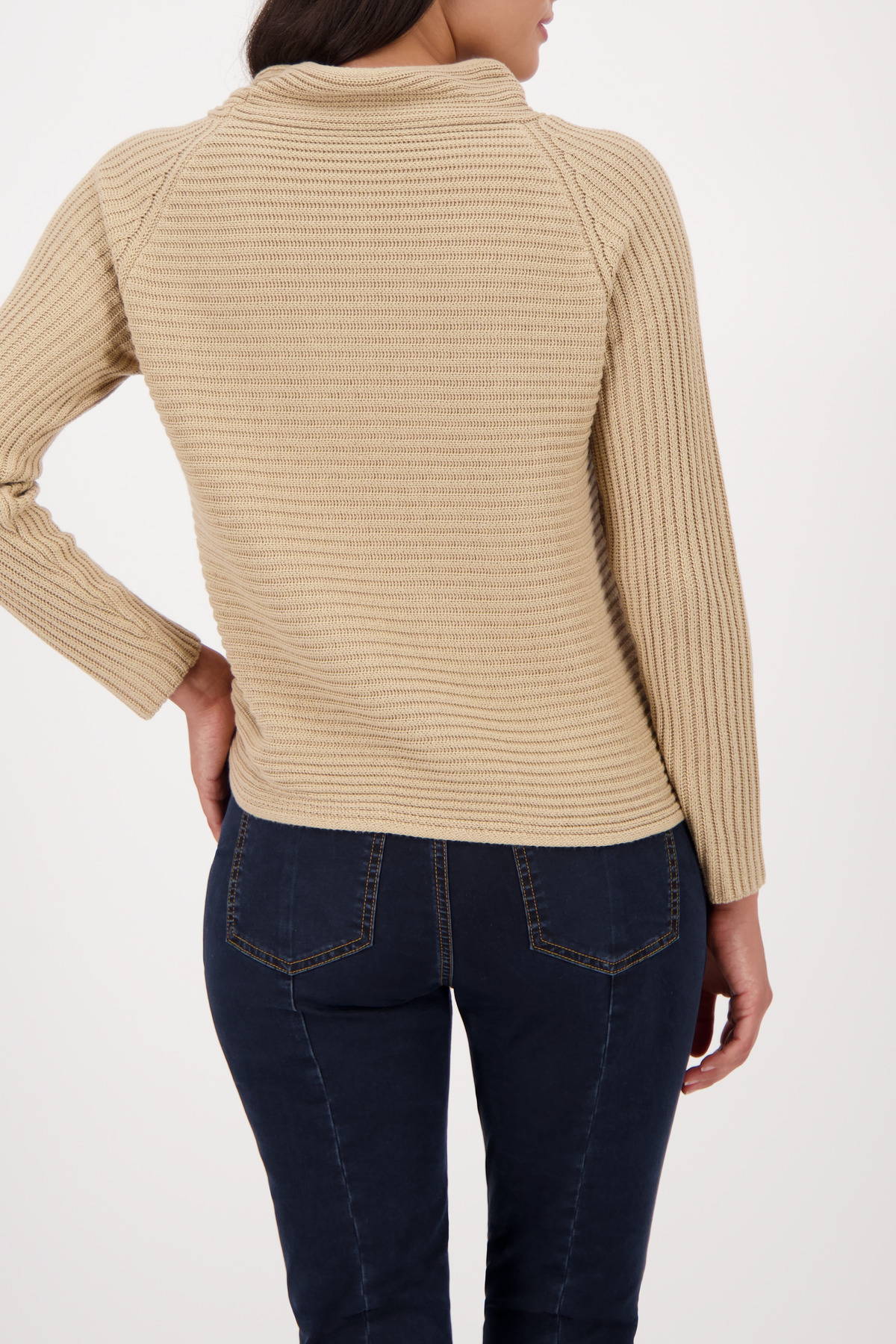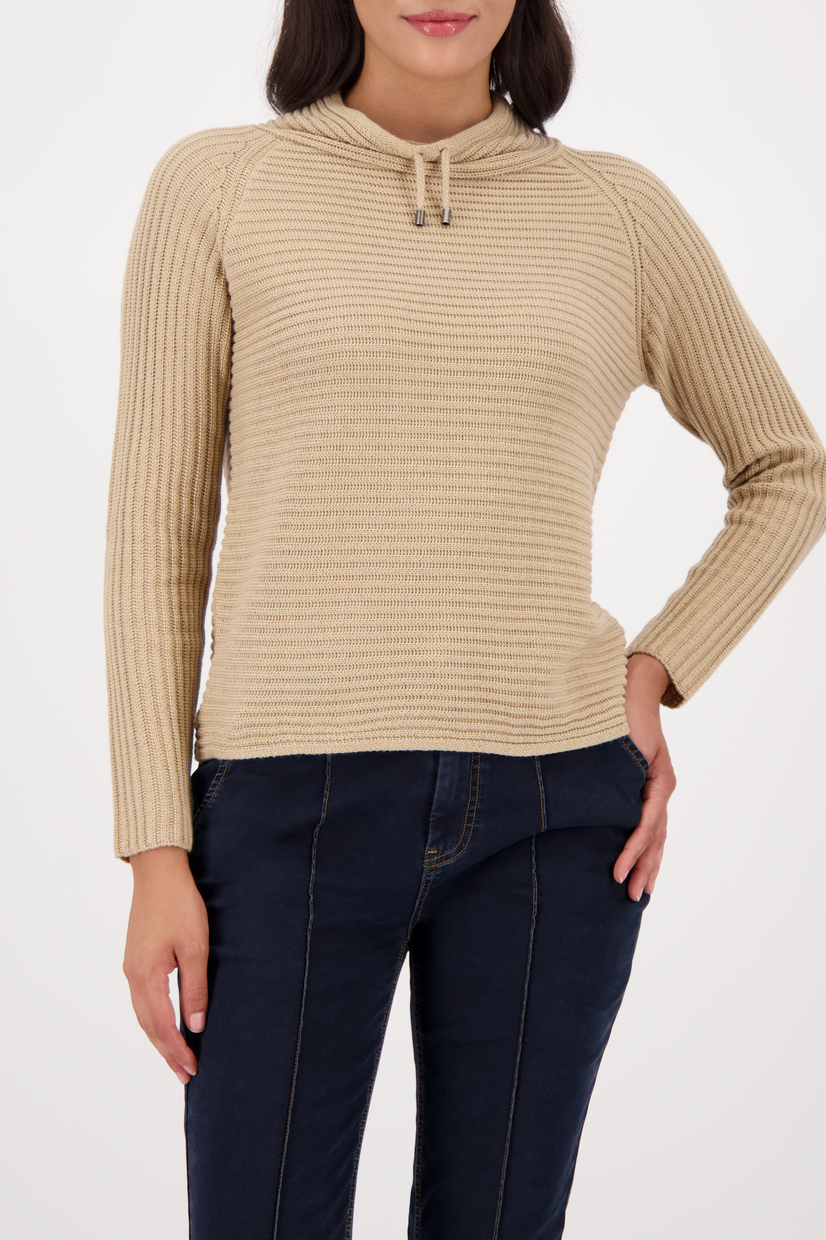 Deze stijlvolle trui van een hoogwaardige katoenmix overtuigt door de geribbelde structuur, de normale pasvorm en de elegante opstaande kraag met koord.