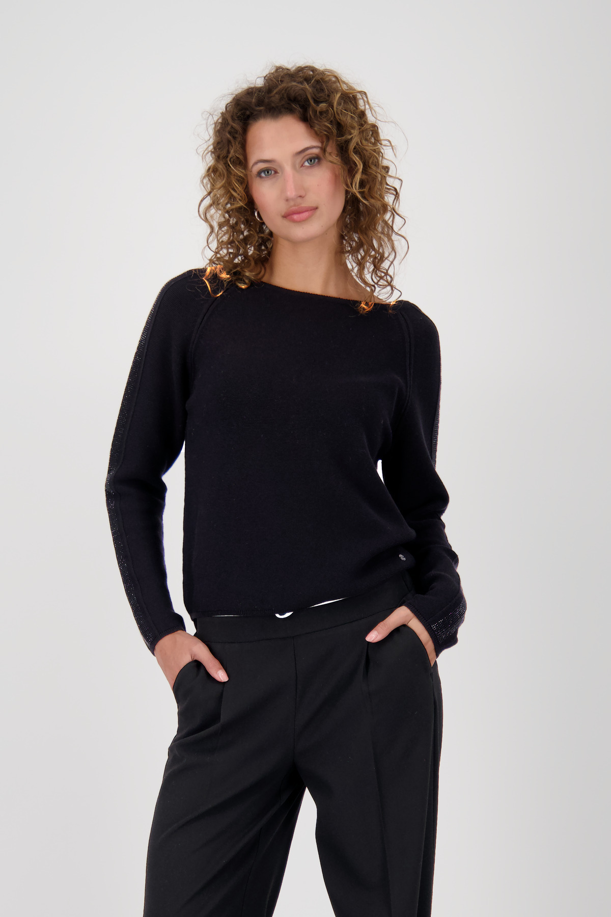 Elegante trui van 100% katoen met strass-steentjes op de mouw en ronde hals – een sprankelend statement!
