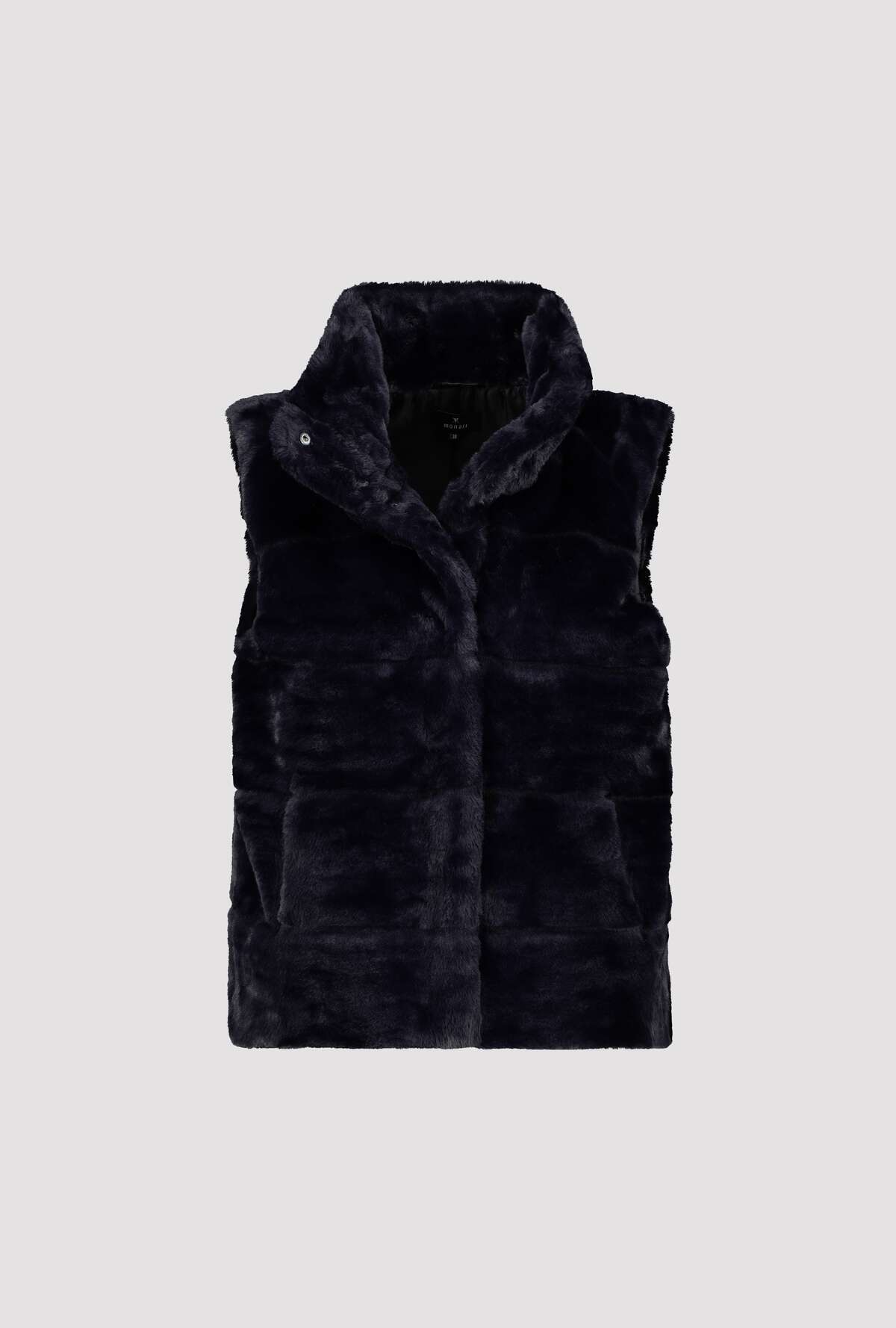 Elegante faux fur gilet met staande kraag en zachte haptiek, in regular fit. De knoopsluiting en insteekzakken zorgen voor stijlvolle functionaliteit.