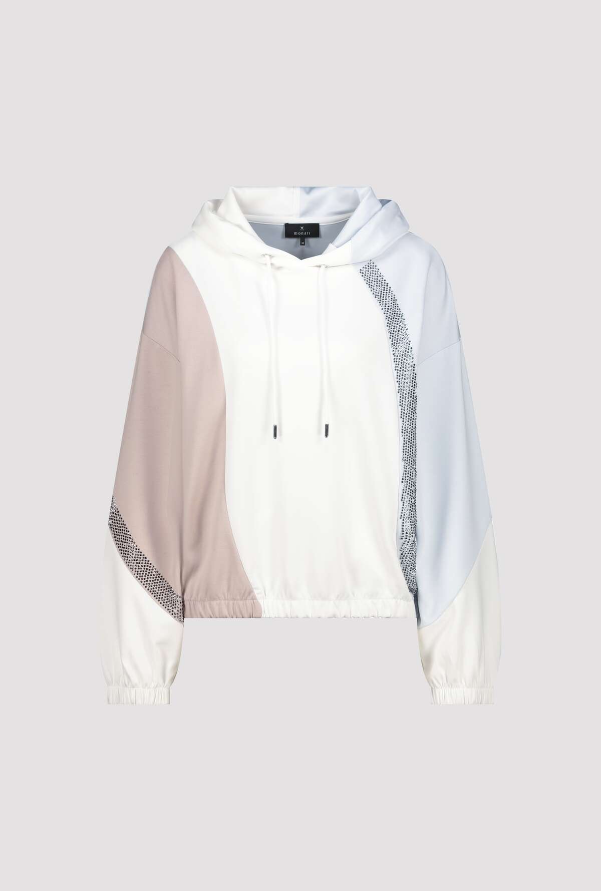 Stijlvolle colorblock-sweater van soepele viscose met strass-steentjes en capuchon – modern en elegant.