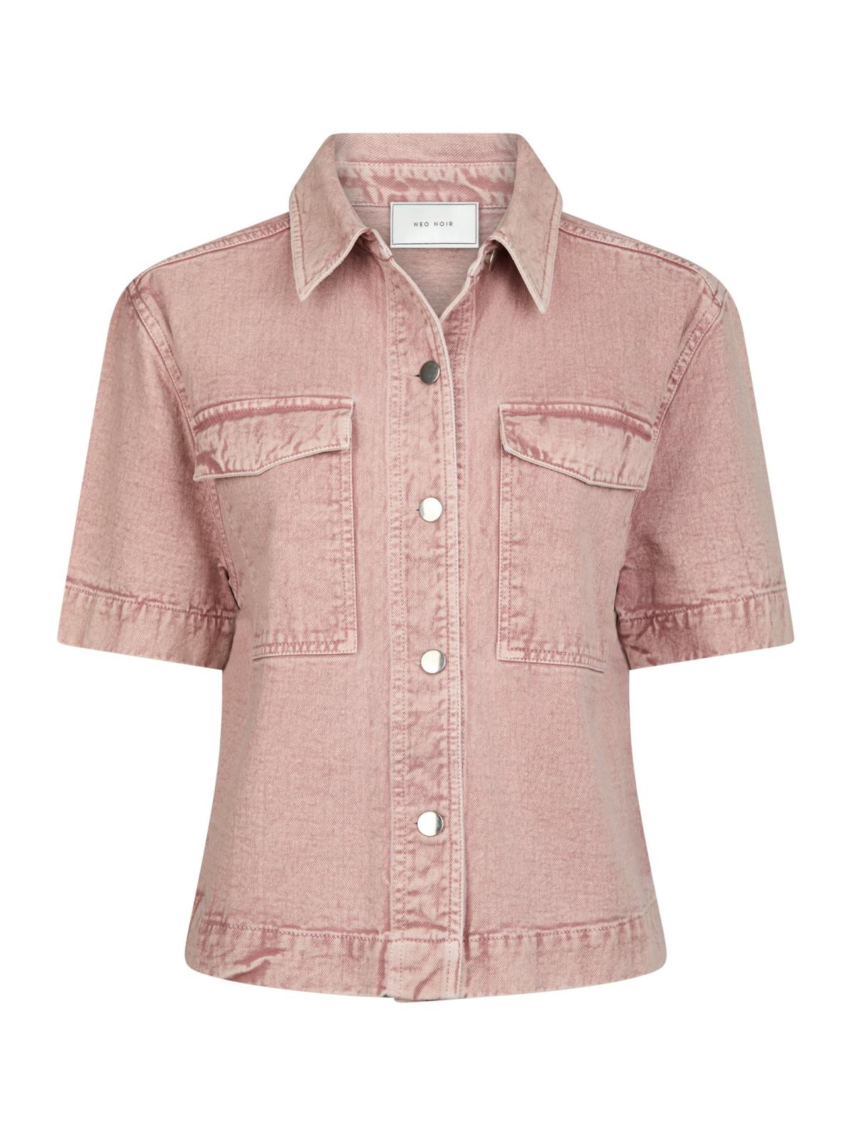 Coole katoenen blouse met korte mouwen, kraag en borstzakken.