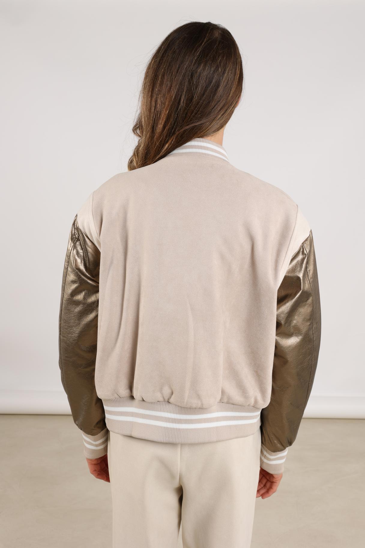 De Gent Jacket is een stoere bomber met een grote N op de borst, bronzen mouwen, knoopsluiting, twee zakken en aansluiting bij de mouwen.