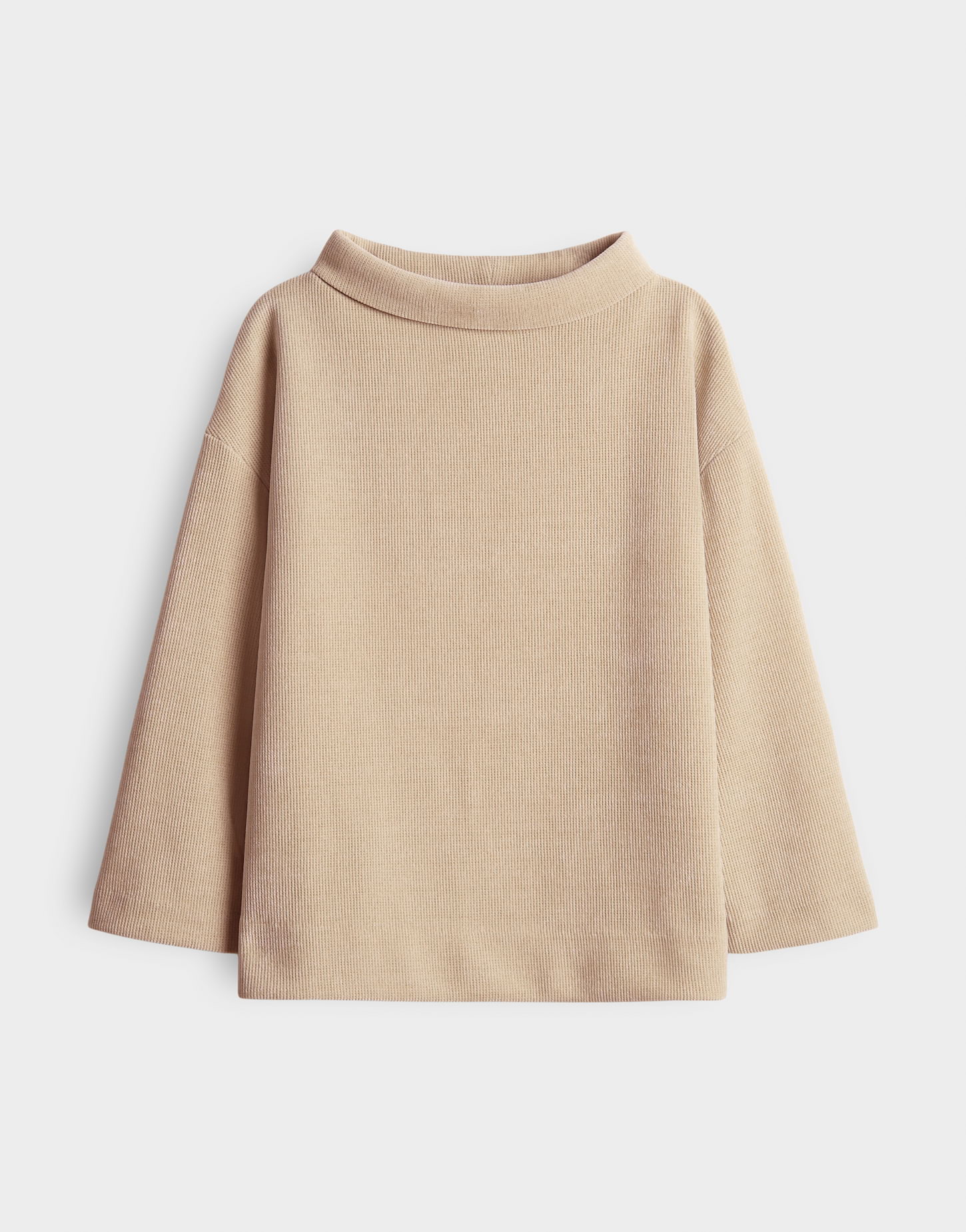 De zachte trui met textuur in een fijne wafellook met een omgeslagen boothals geeft elke outfit een casual touch.