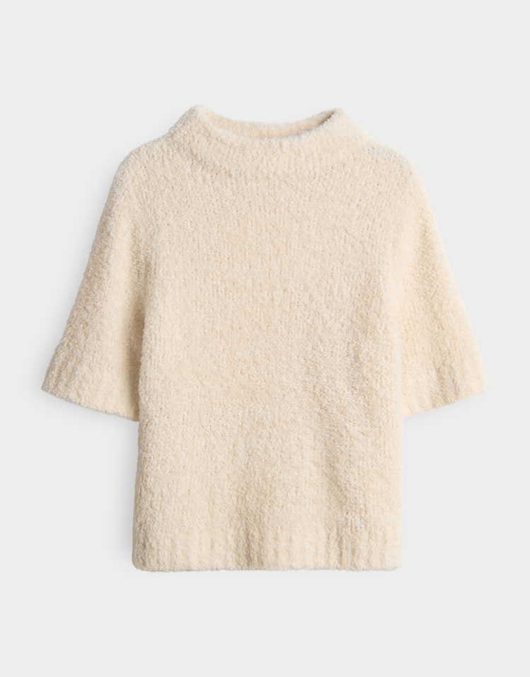 Dit breisel met korte mouwen is licht en toch bijzonder, met een mix van bouclé en harig effectgaren waardoor het een pluche oppervlak heeft. Een modieuze highlight met een modern karakter.