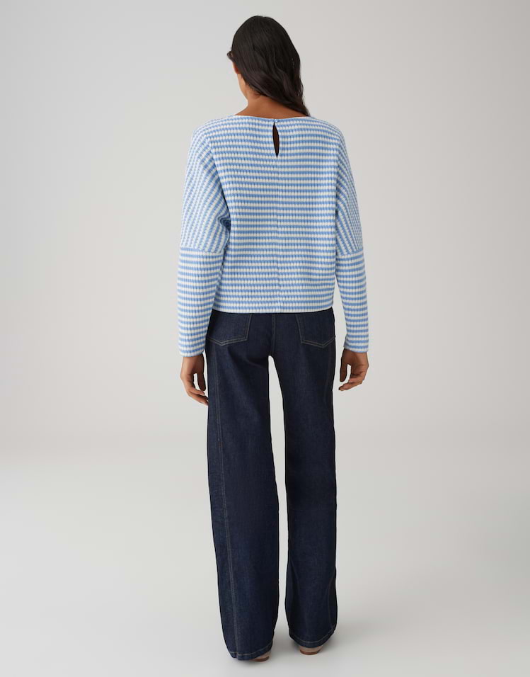 Dit sweatshirt combineert modern comfort met een vleugje retro dankzij de opvallende gebreide structuur in een streepdessin aan de buitenkant en de zachte jersey aan de binnenkant. De innovatieve afwerking combineert beide materialen naadloos, waardoor het bijzonder comfortabel is om te dragen.