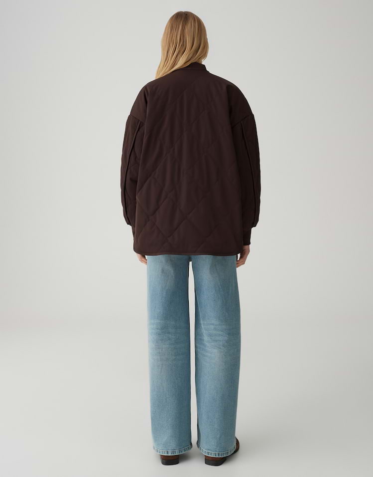 Het gewatteerde jack heeft een slimme omkeerfunctie en twee veelzijdige looks. De ene kant heeft een modern gewatteerd patroon en de andere kant is clean en minimalistisch, perfect voor een minimalistische look. Dankzij het waterafstotende materiaal en de wijde blouson snit kun je kiezen tussen twee looks afhankelijk van je stemming en ben je altijd goed beschermd.
