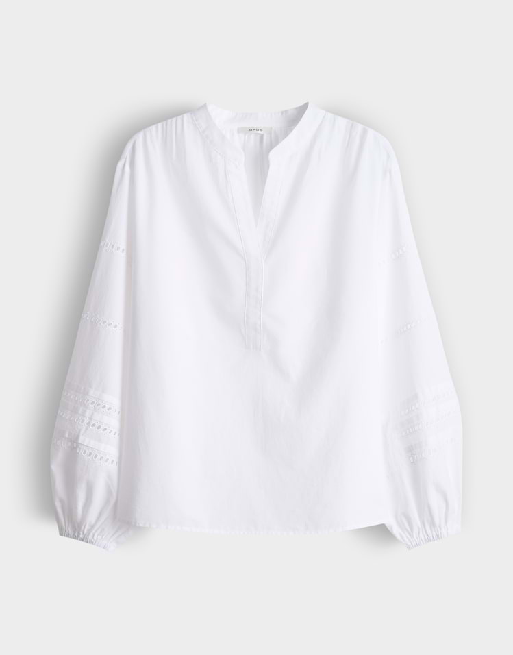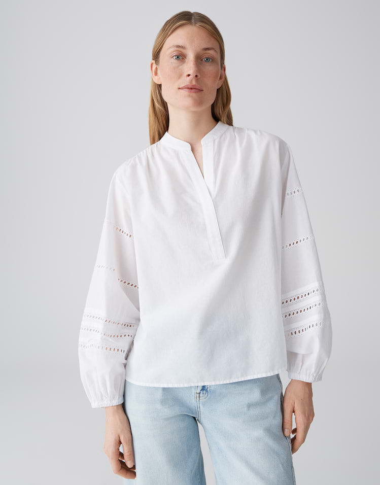 De kunstig bewerkte mouwen zijn versierd met embroidery anglaise, een decoratief geperforeerd borduursel, en creëren een luchtig ontwerp. In combinatie met duurzaam katoen is onze vrouwelijke tuniekblouse een charmante combinatie van luchtigheid en vakmanschap.