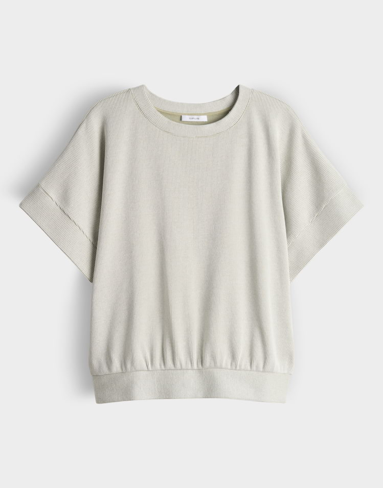 Moderne strepen ontmoeten een cool geribbeld effect: dit sweatshirt met textuur en brede boorden zal je bekoren met zijn losse pasvorm en zachte sweatstof. Het casual batwing-silhouet maakt het sweatshirt de perfecte metgezel voor dagelijks gebruik en vrije tijd.