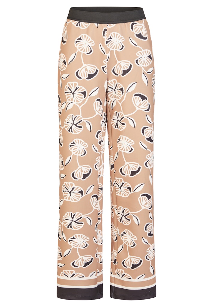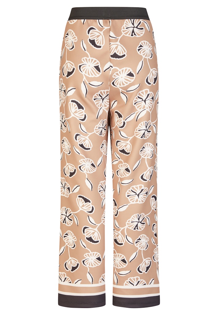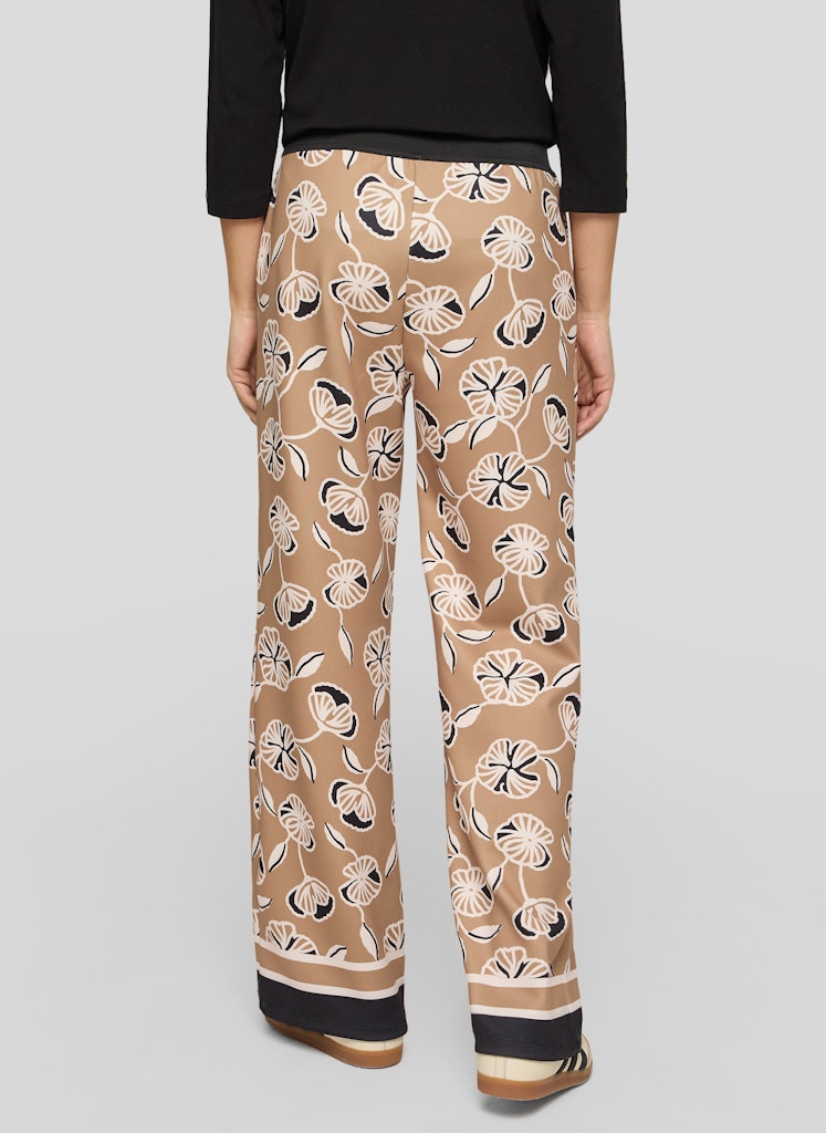 Deze wijd gesneden slip-on broek bied een aangename structuur en een nette uitstraling met een stevig materiaal – ideaal voor overgangsperiodes of koelere dagen. De elastische tailleband zorgt voor een comfortabele pasvorm, terwijl het bloemrijke all-over ontwerp in combinatie met de contrasterende beenmanchetten een modern accent geeft.