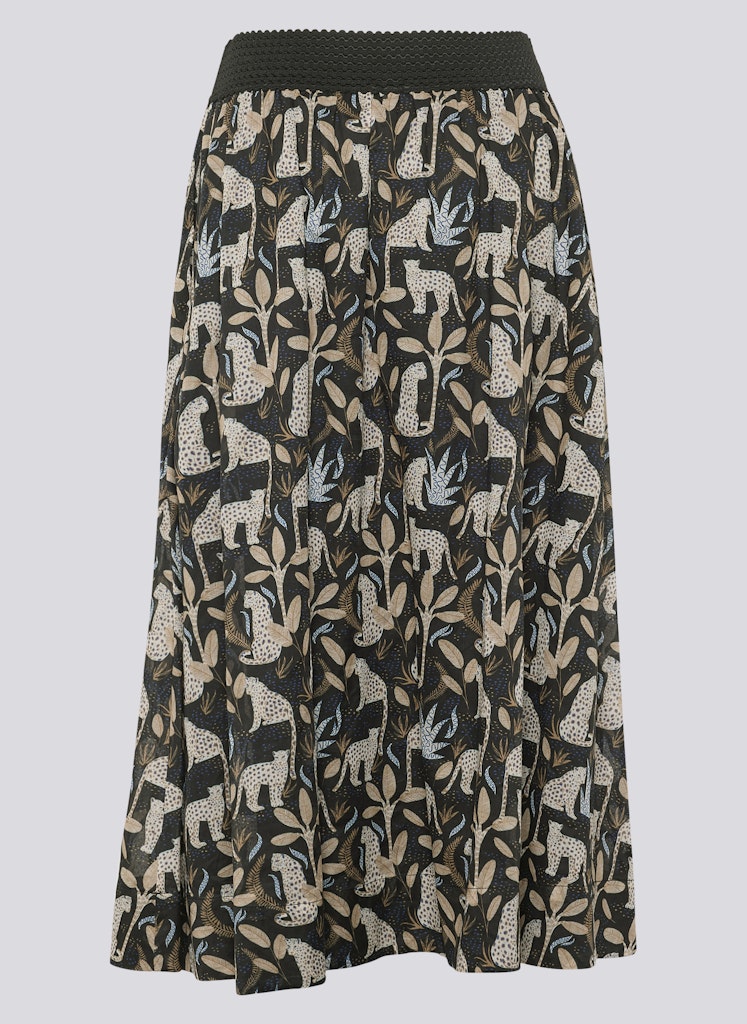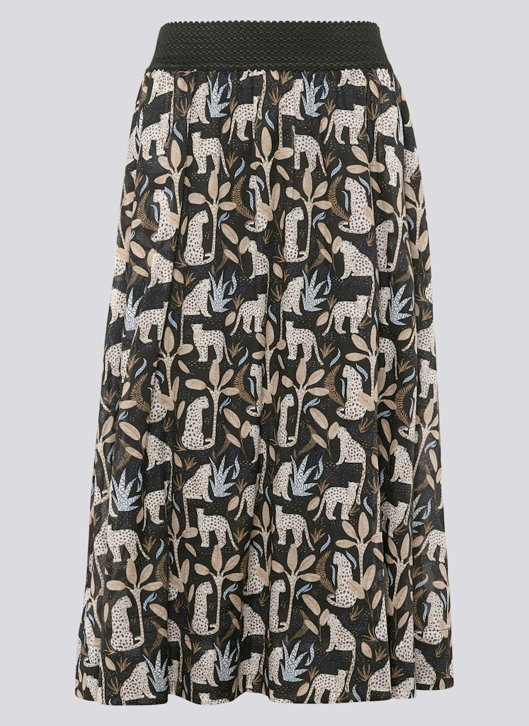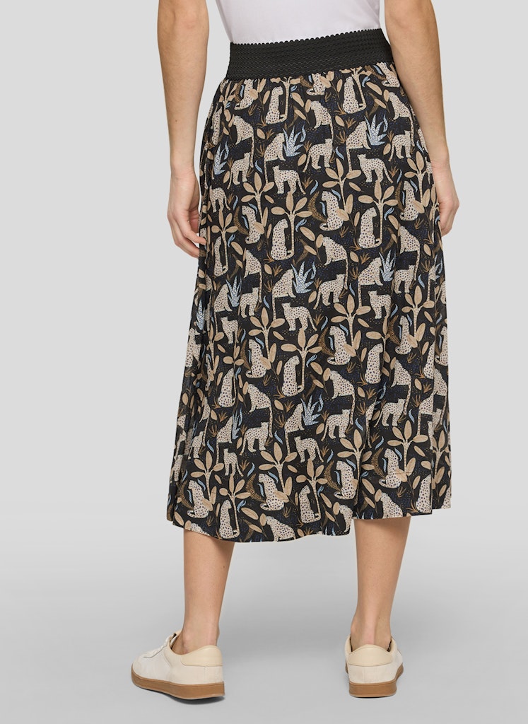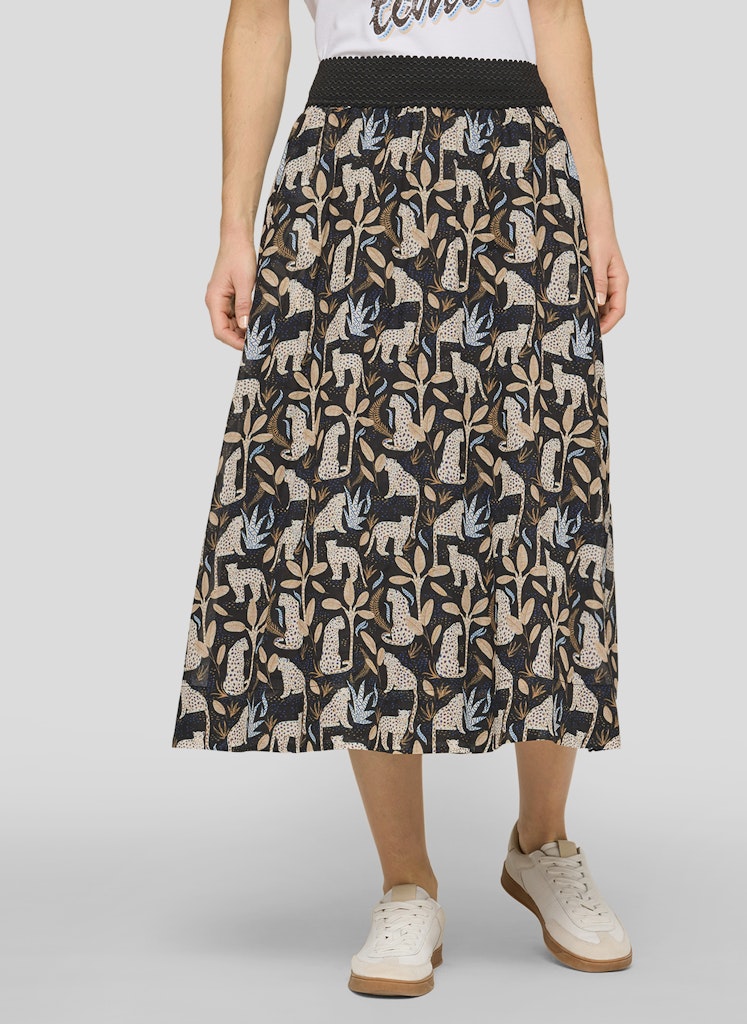 Deze rok van puur katoen overtuigt met een comfortabele, natuurlijke uitstraling en een zacht vloeiende kwaliteit. De brede elastische tailleband zorgt voor een comfortabele pasvorm en vormt een vrouwelijke, licht uitlopende silhouet. De decoratieve all-over print geeft het model een levendige touch.