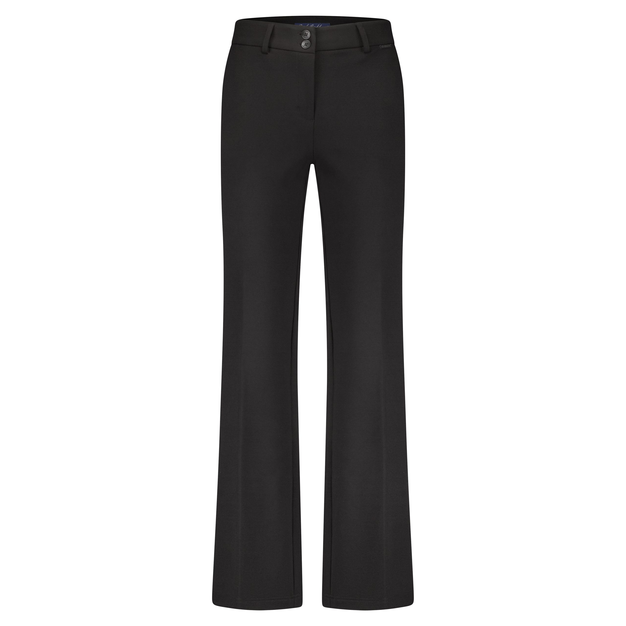 De Bibette is een flare broek van punta stof. De broek heeft een aangesloten pasvorm op de bovenbeen en heup en is uitlopend vanuit de knie in de perfecte flare. De Bibette heeft steekzakken, paspelzakken aan de achterkant en een hoge taille.