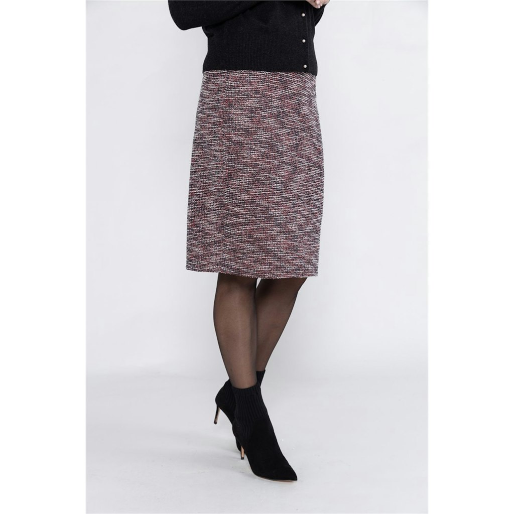 Dit rechte rokje is gevoerd. Gemaakt in structuur jacquard jersey. De rok heeft aan de achterkant een split.