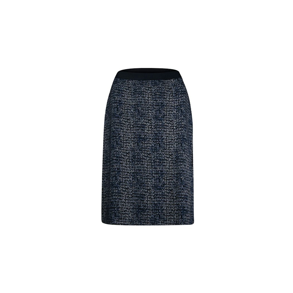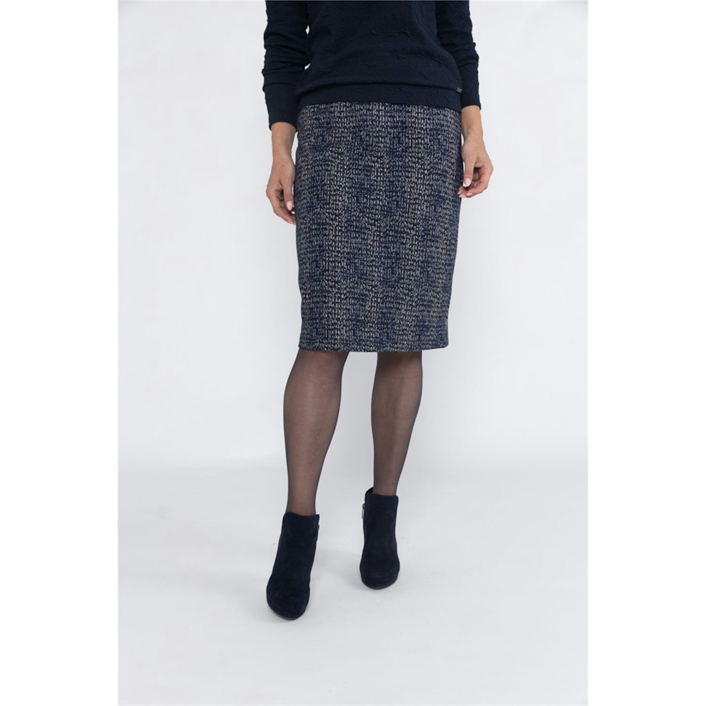 Dit rechte rokje is gevoerd. Gemaakt in structuur jacquard jersey. De rok heeft aan de achterkant een split.