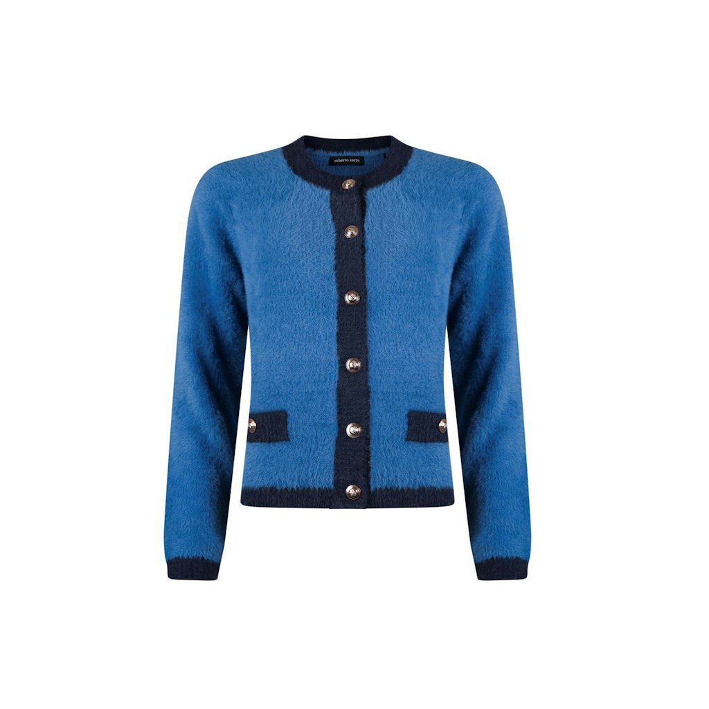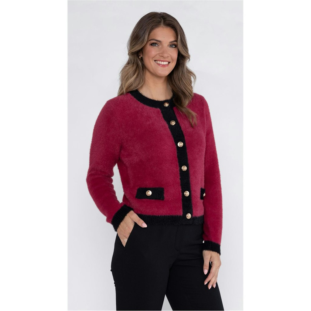 Vest ronde hals en knoopjes met decoratieve zakjes in heerlijk zacht harig garen.