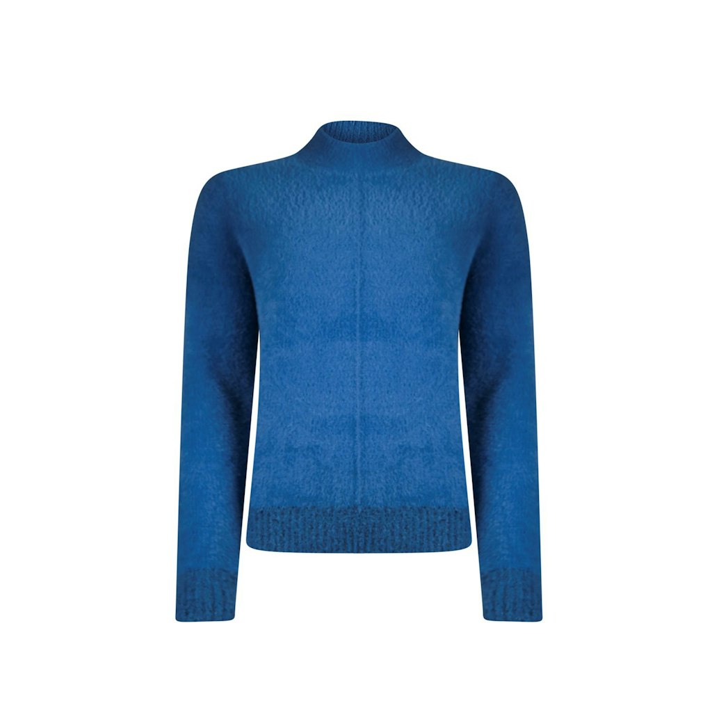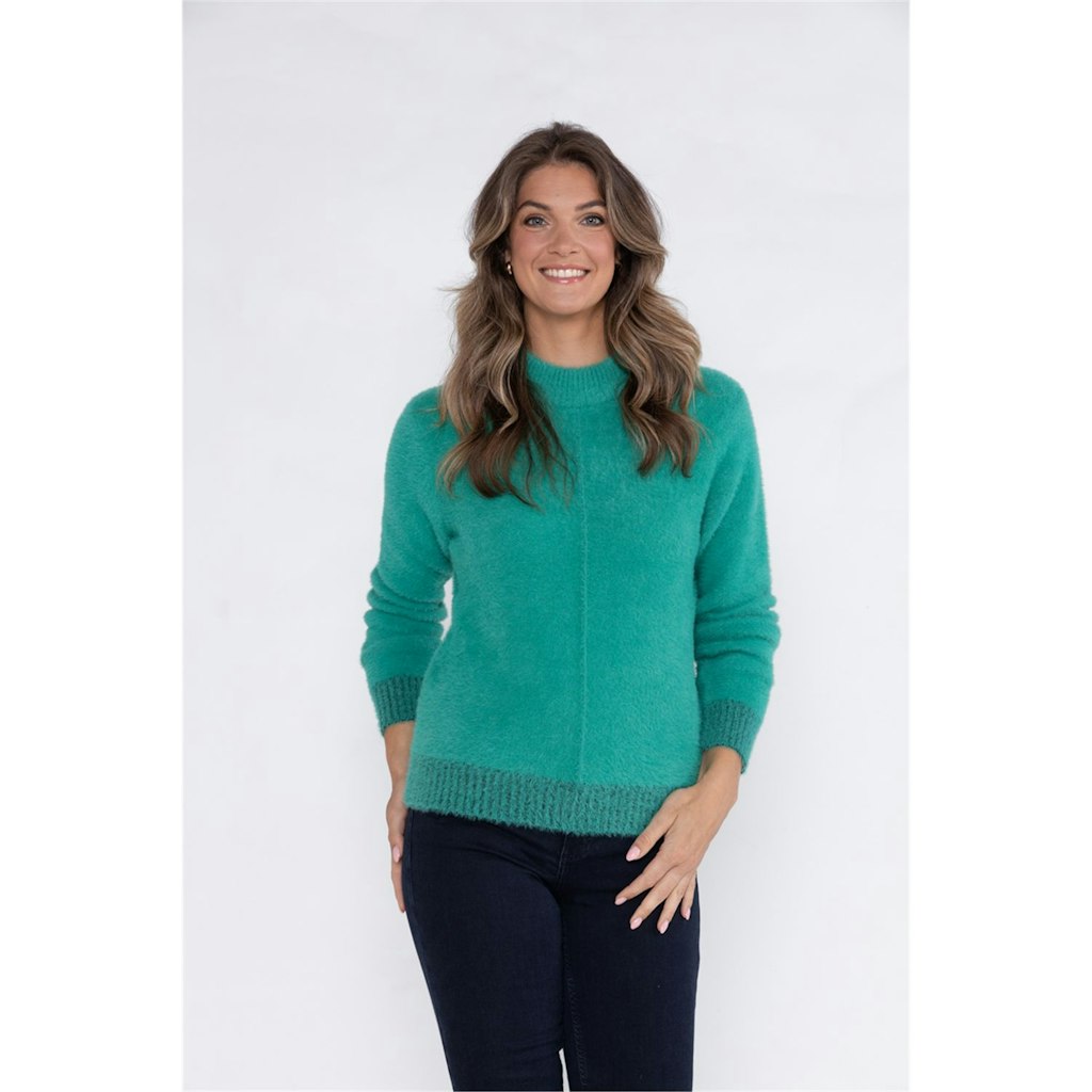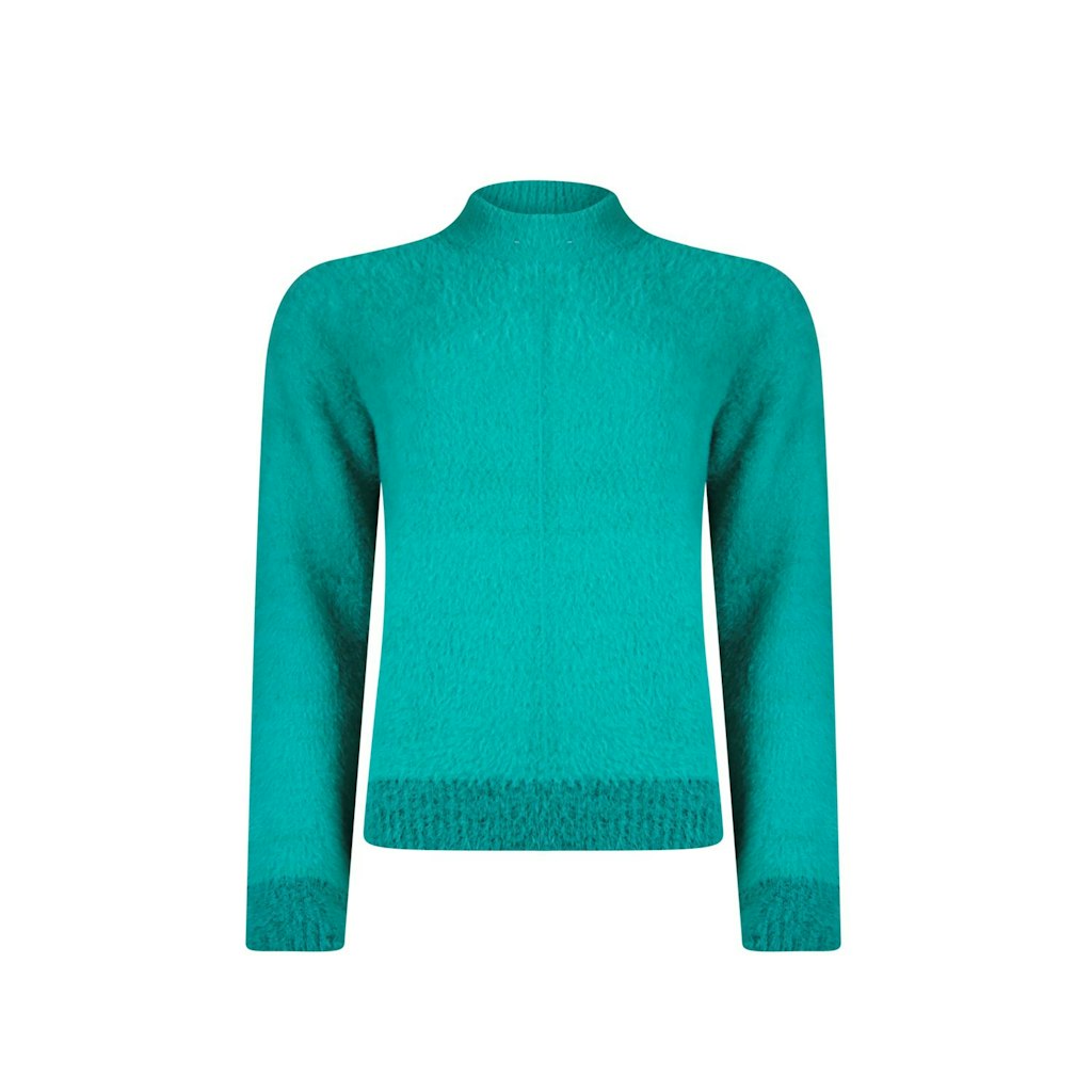 Trui met turtle in heerlijk zacht harig garen. Met in de onderboord een licht glimmend draadje mee gebreid voor een luxe straling.