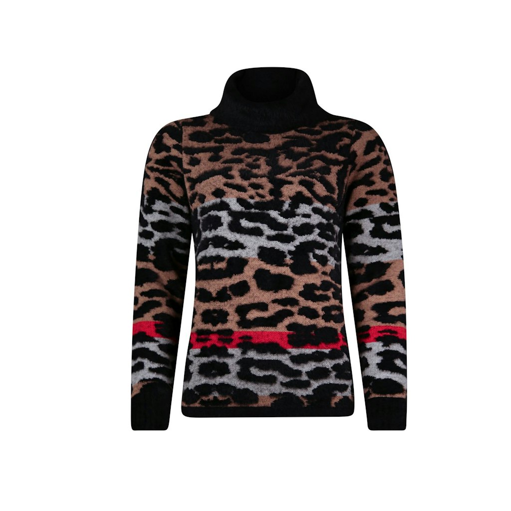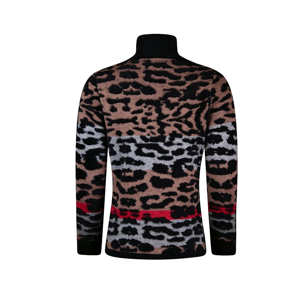 Gedessineerde zachte pullover met kol in een mix met harig chenille garen. Het patroon is 3-kleurig. Echt een aangename warme pullover voor de koude dagen.