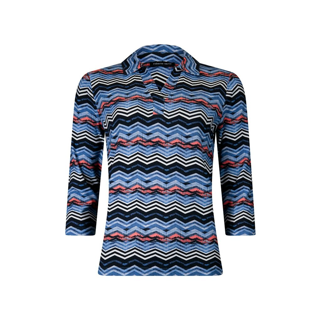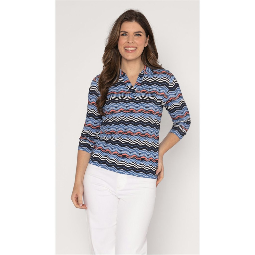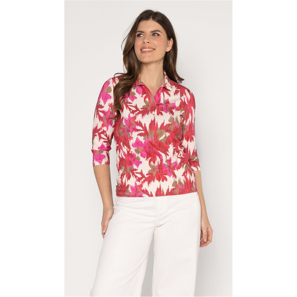 Licht getailleerd, losvallend poloshirt met driekwartmouwen.