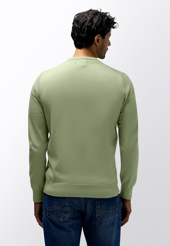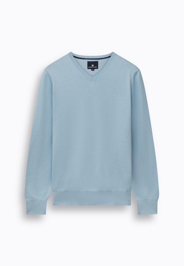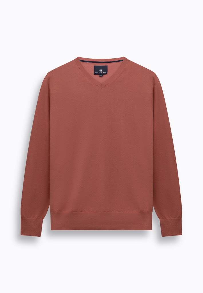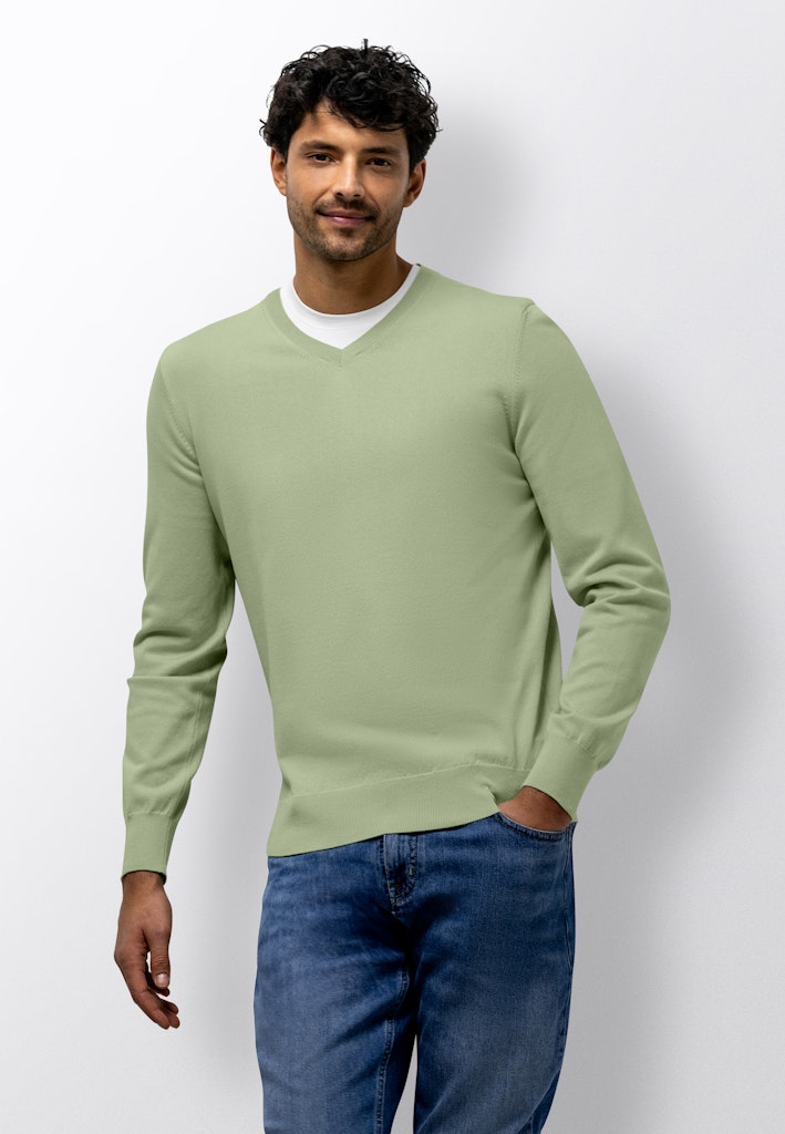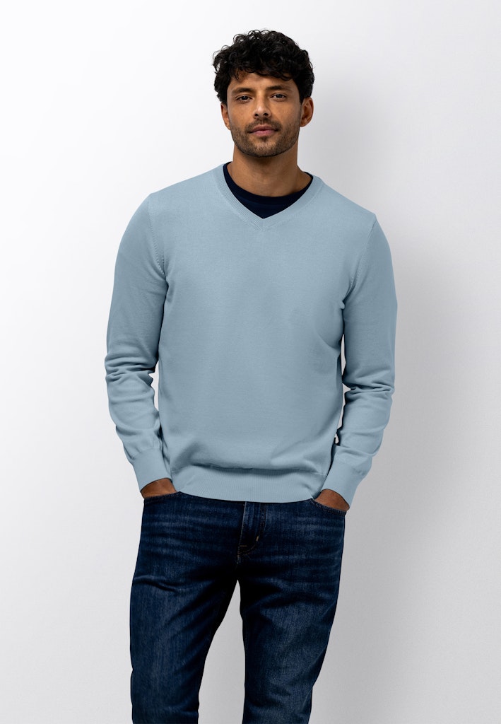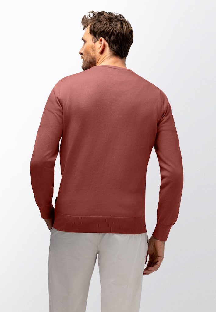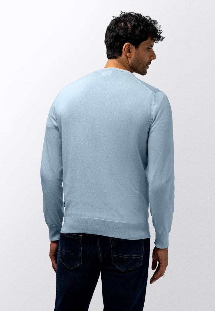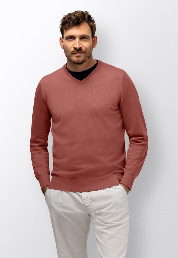 Deze regular fit trui is fijngebreid van een mix van katoen, modal en polyamide, waardoor het materiaal zacht aanvoelt en soepel valt. De V-hals geeft het ontwerp een tijdloze uitstraling en de subtiele afwerking langs boord en mouw maakt het geheel verzorgd.